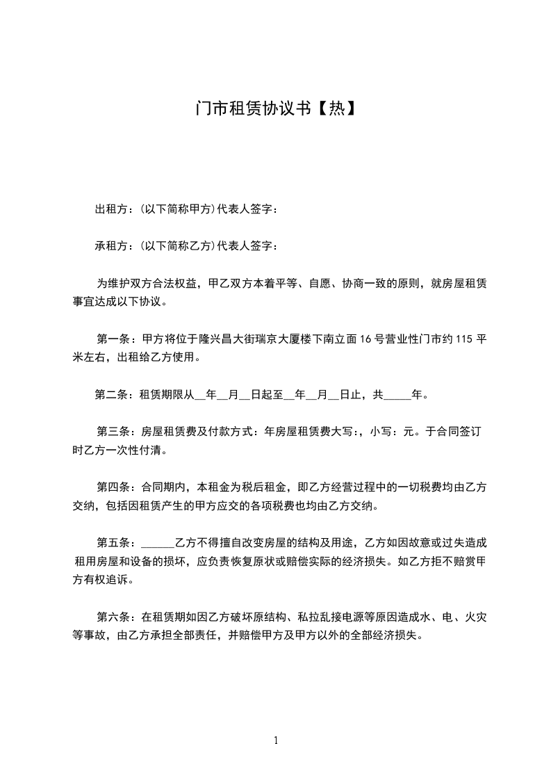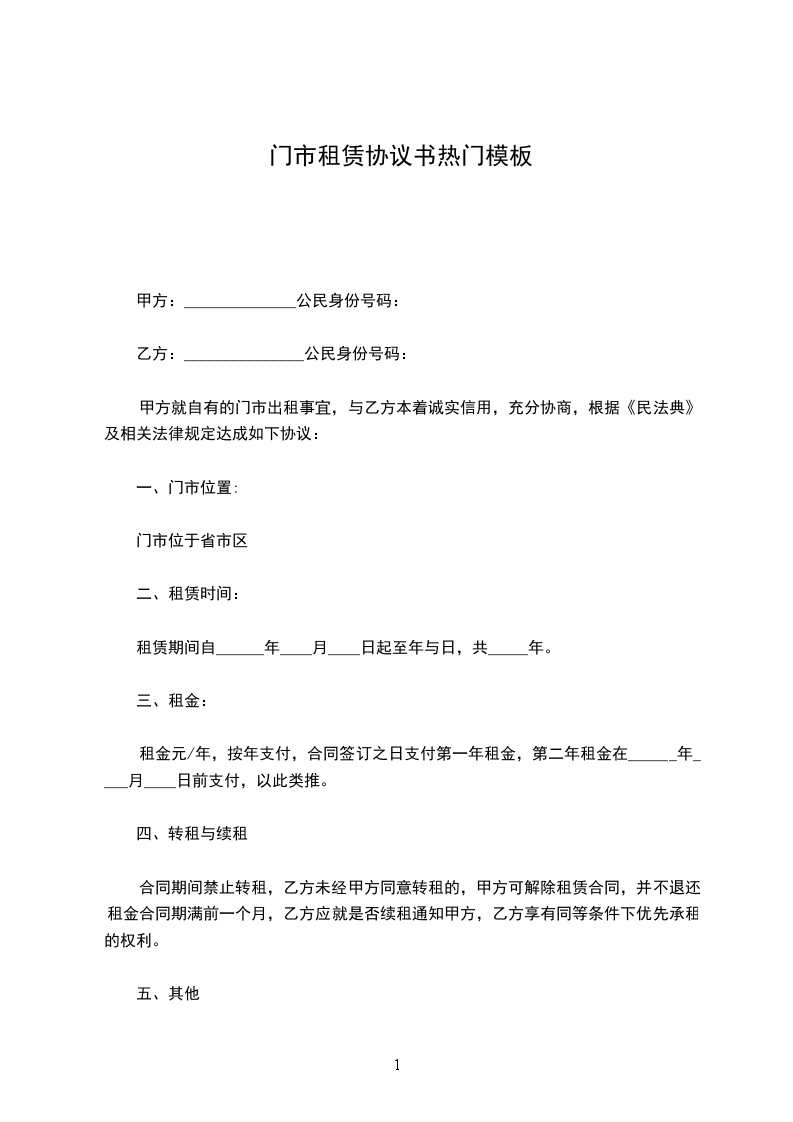 甲方就自有的门市出租事宜,与乙方本着诚实信用,充分协商,根据《民法典》及相关法律规定达成如下协议: