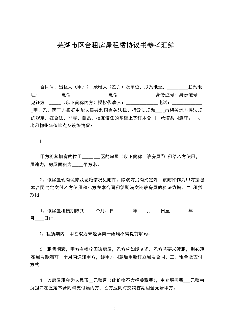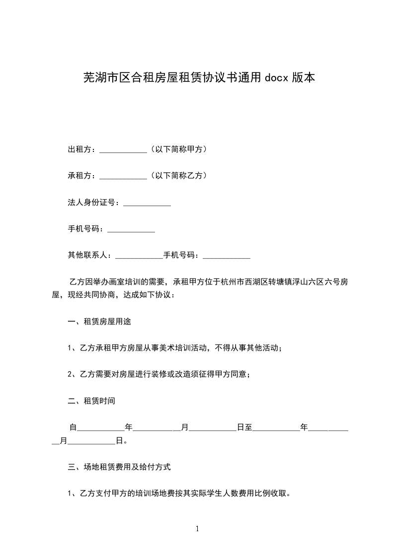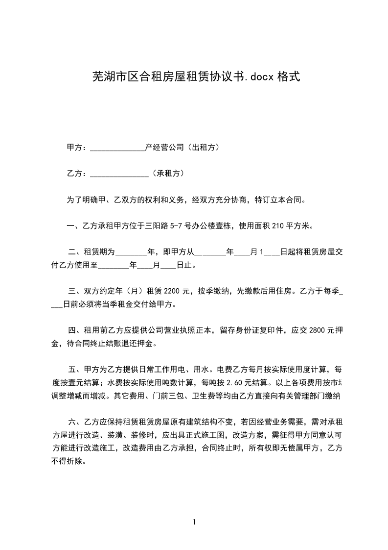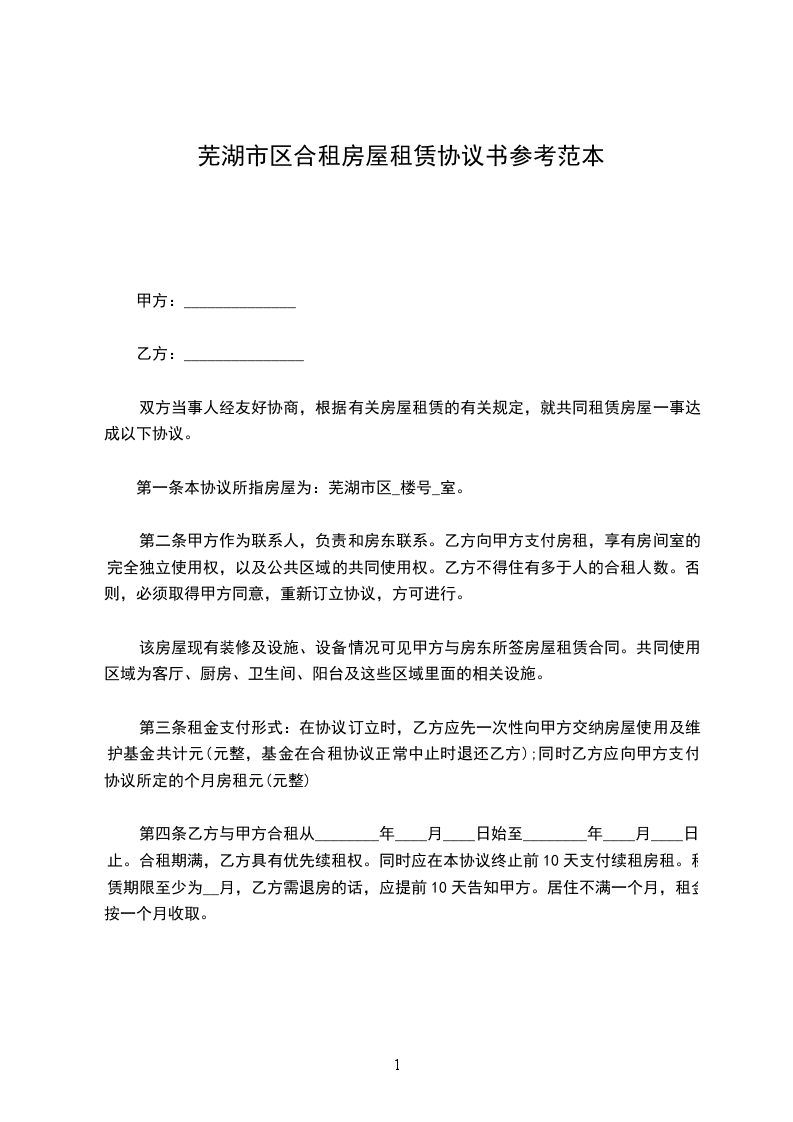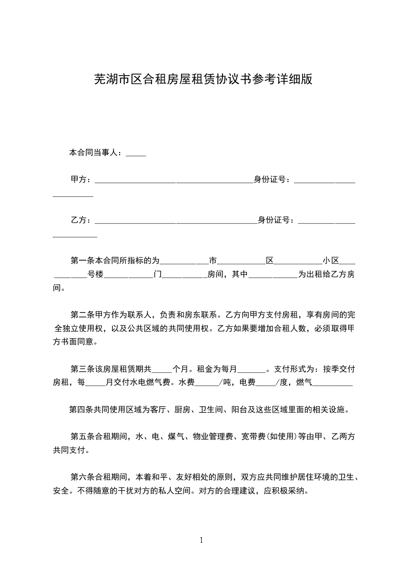 第一条本合同所指标的为____________市____________区____________小区____________号楼____________门___________房间,其中____________为出租给乙方房间。