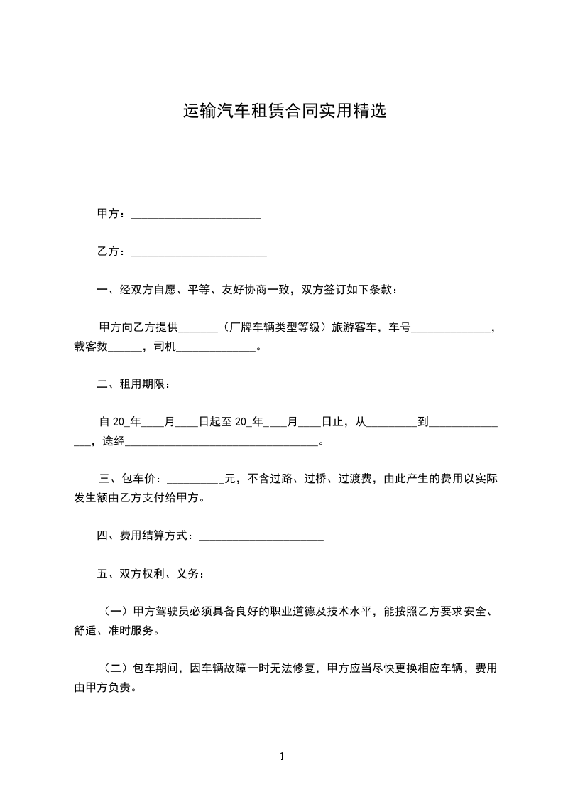 四、付款方式为__月结。乙方工作时间满一个月后,甲方按实支付乙方租车费用,乙方汽车进场后,我司加油员对每台汽车在加油前的原有库存油量进行测量,并签字确认,以保证车主的利益。
