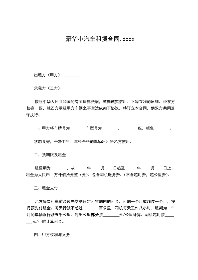 租赁期为________,从______年_____月____日起至______年_____月____日止。租金为人民币:万仟佰拾元整(元)。包含司机服务费。(不含超时费,超公里费)。