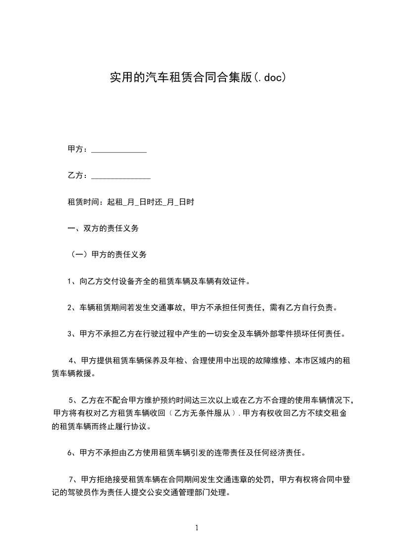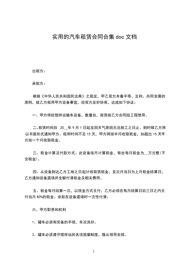 根据《中华人民共和国民法典》的有关规定,按照平等互利的原则,为明确出租方与承租方的权利义务,双方经友好协商,就_________车的租赁事宜达成一致意见,同意按下列条款签订本协议。
