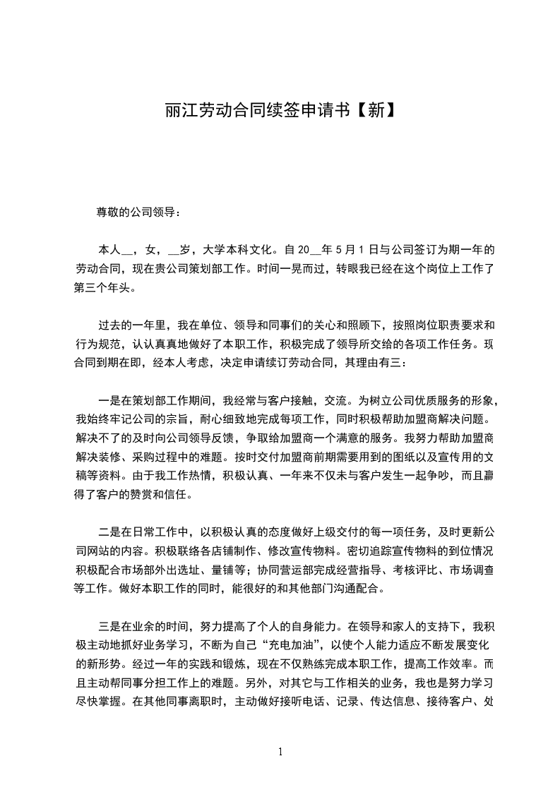 过去的一年里,我在单位、领导和同事们的关心和照顾下,按照岗位职责要求和行为规范,认认真真地做好了本职工作,积极完成了领导所交给的各项工作任务。现合同到期在即,经本人考虑,决定申请续订劳动合同,其理由有三: