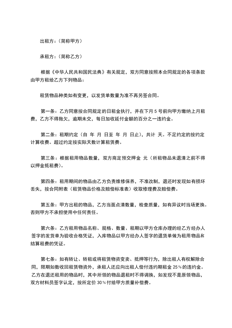 租赁物品种类如有变更,以发货单数量为准不再另签合同。
