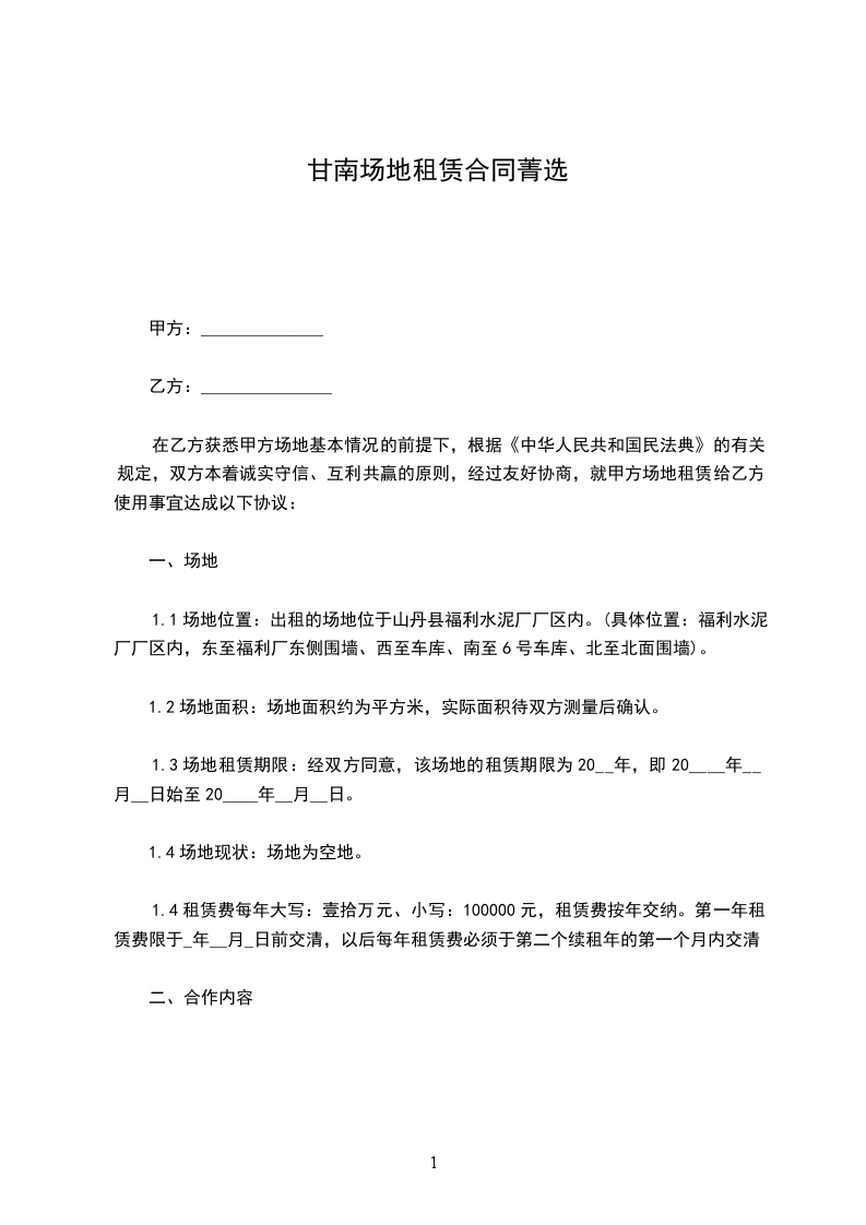 在乙方获悉甲方场地基本情况的前提下,根据《中华人民共和国民法典》的有关规定,双方本着诚实守信、互利共赢的原则,经过友好协商,就甲方场地租赁给乙方使用事宜达成以下协议: