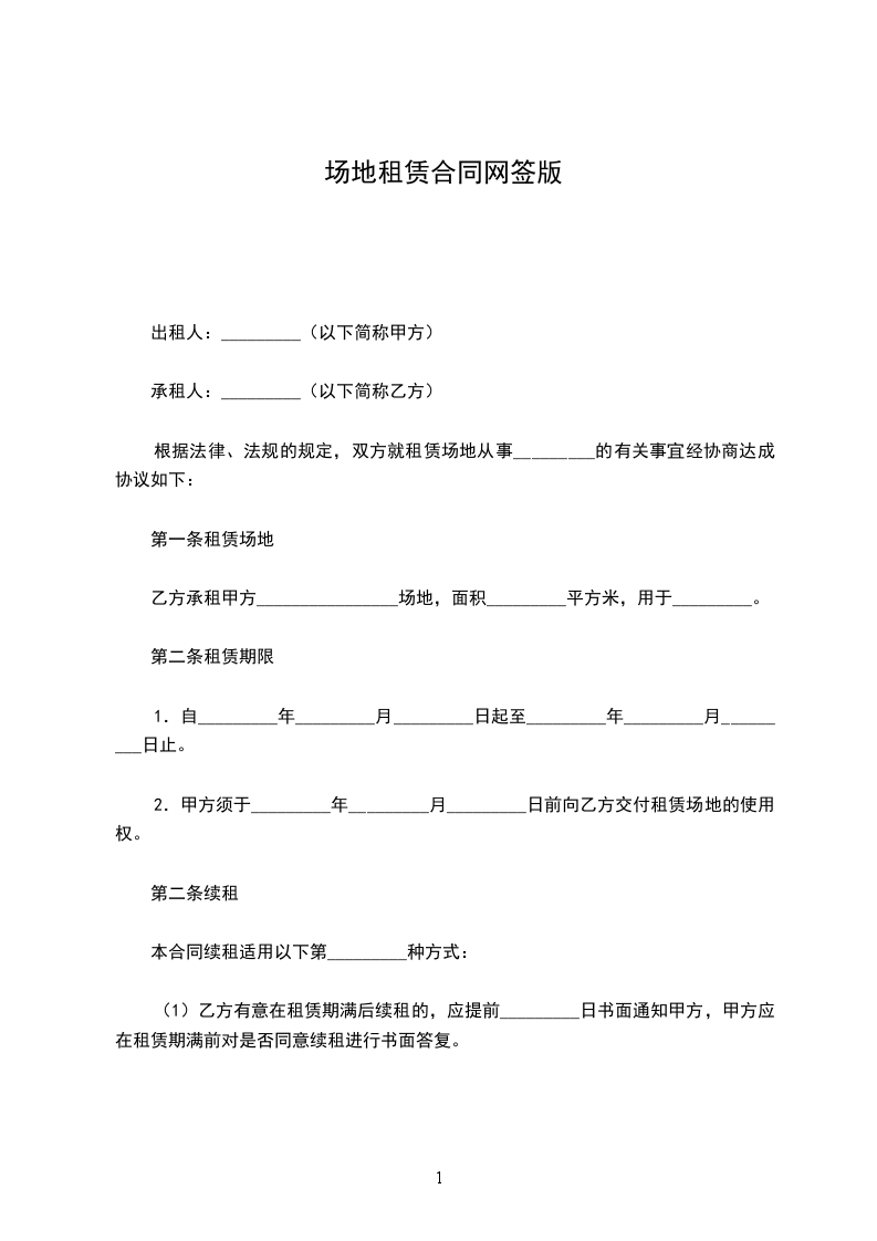 根据《中华人民共和国民法典》及有关的规定,甲、乙双方经过平等、自愿、充分协商,就甲方向乙方租用场地之有关事宜达成一致意见,特订立本合同,以资信守。