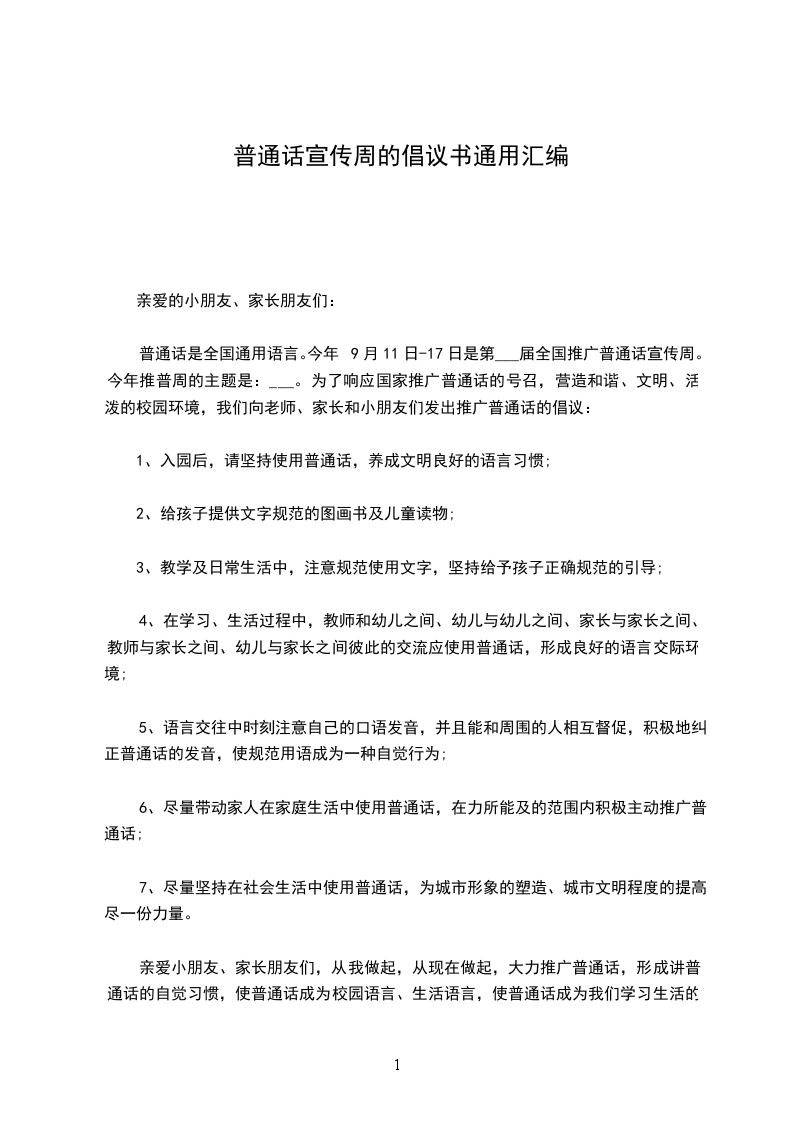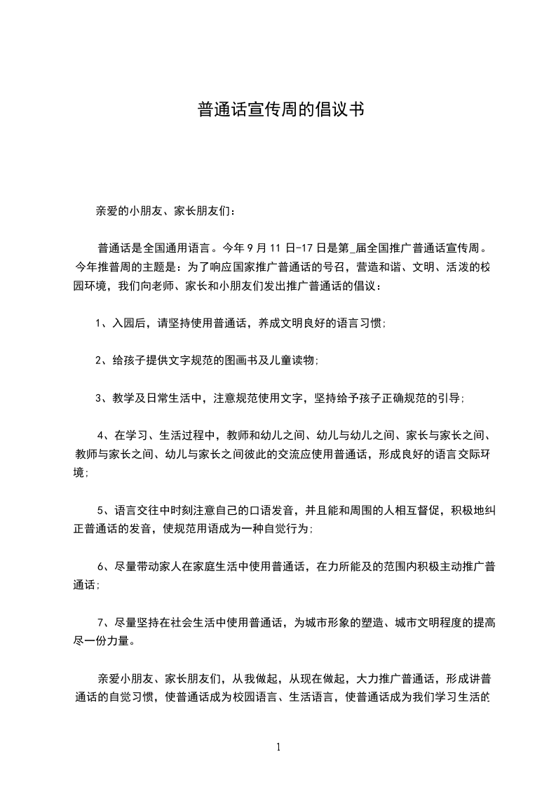 普通话是全国通用语言。今年9月11日-17日是第___届全国推广普通话宣传周。今年推普周的主题是:___。为了响应国家推广普通话的号召,营造和谐、文明、活泼的校园环境,我们向老师、家长和小朋友们发出推广普通话的倡议: