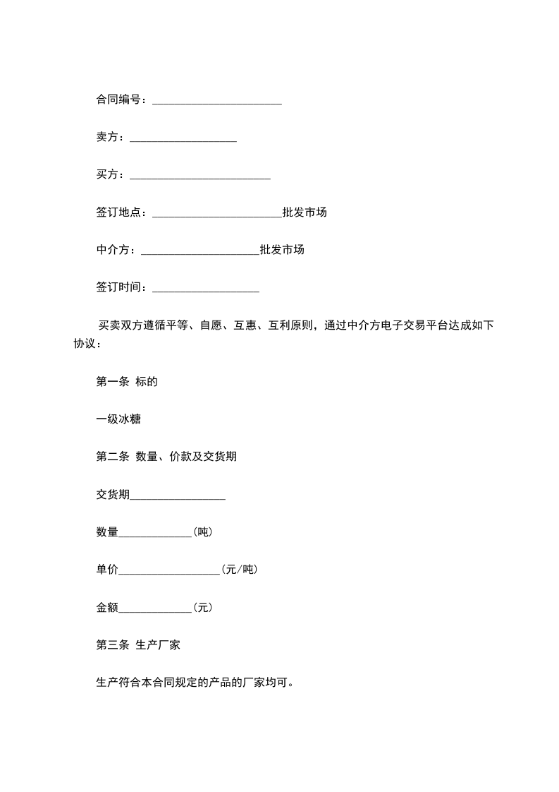 卖方在中介方电子交易平台销售的产品必须符合冰糖GB317-20xx国家标准对精制、优级、一级冰糖。