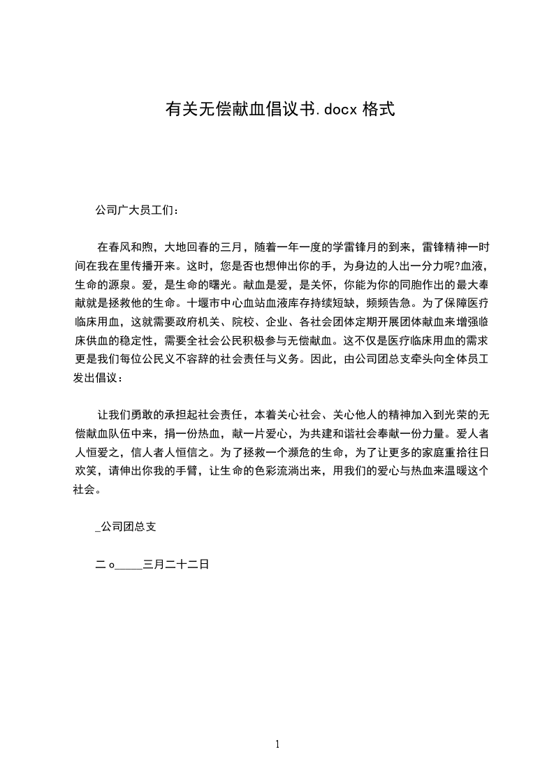 是内心充满爱的人给急需者最温暖的礼物,是点燃他人生命希望的火种,是友爱团结、无私奉献精神的具体表现,是救死扶伤的崇高行为。作为当代大学生的我们应该成为献血行动的积极响应者,把"奉献、友爱、进步、互助"的志愿精神与实际行动牢牢结合在一起。为此,我们以青年志愿者协会和扬州市红十字协会名义向我校志愿者及所有有爱心的同学正式发出倡议:让我们以履行公民义务为光荣,本着关心社会,关心他人的精神积极的参加到光荣的队伍中来,心系天下,关爱生命,体现一个大学生的高度社会责任感和助人为乐的精神。