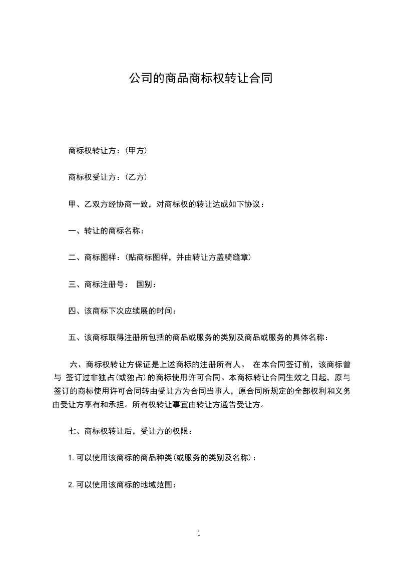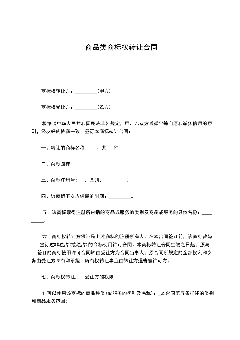 十一、商品质量的保证:商标权转让方要求受让方保证该商标所标示的产品质量不低于转让方原有水平,转让方应向受让方提供商品的样品,提供制造该类商品的技术指导或技术诀窍(可另外签订技术转让合同);还可提供商品说明书、商品包装、商品维修法,在必要时还应提供经常购买该商品的客户名单。 属非永久性转让的,转让方可以监督受让方的生产,并有权检查受让方生产情况和产品质量。