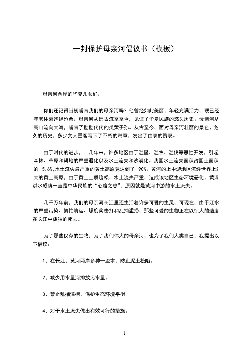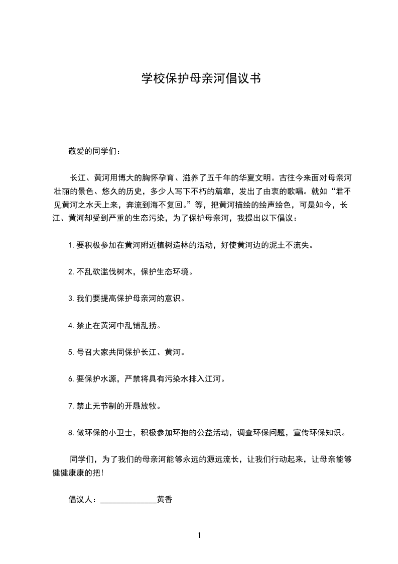 望着那气势磅礴、奔腾而去的长江、黄河,忆往昔,曾有多少的文人墨客留下了脍炙人口的诗词名篇。长江、黄河那磅礴的气势,一泻千里的气概,又怎不让人所赞叹?可是,现如今,那往日壮美的母亲河,渐渐失去了往日的风采,那震天动地的阵阵涛声,就正如长江、黄河的哭诉,是那般凄凉和无奈。人们为了自己的利益,无情的砍掉大片大片的树林,古时绿树成荫、水草丰美的黄土高原,在人们无节制的开垦放牧下,使植被遭到了破坏,土壤变得疏松,大量的泥沙被冲入了黄河,黄河便失去了以往的清秀,变得浑浊起来。并且两岸的土地,肥力不断下降,给植物的生长造成了很大的困难。早在几千年前,长江中还居住着成千上万的珍稀动物,那时的长江被称作世界孑遗生物避难所。但现在,由于工业生产的废水不断排放,加上长江上繁忙的运输和人类的乱捕滥捞等,人为因素的原因,使得长江中生活的大量珍稀动物以惊人的速度从世界上消失,进入生存的倒计时。不仅这样,长江也因此受到了严重的污染,失去了生物的多样性。当我们怀着无比沉重的心情看着这些巨变时,会急切的想要挽救我们的母亲河,那么我向大家发出以下倡议: