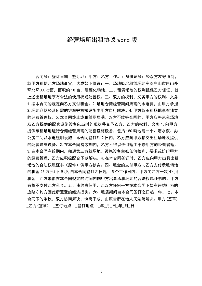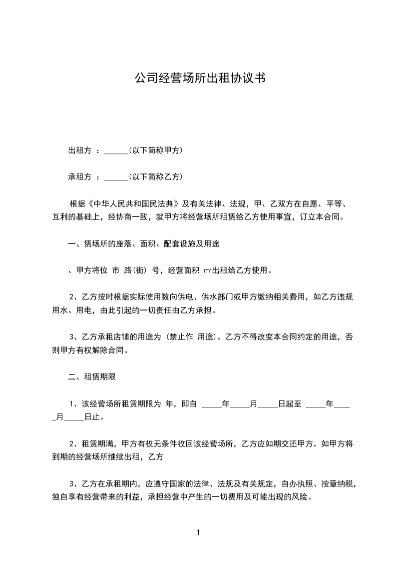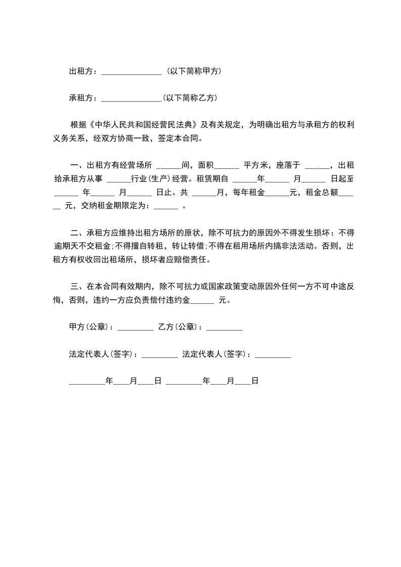 根据《民法典》及有关法律、法规,甲、乙双方在自愿、平等、互利的基础上,经协商一致,就甲方将经营场所租赁给乙方使用事宜,订立本合同。