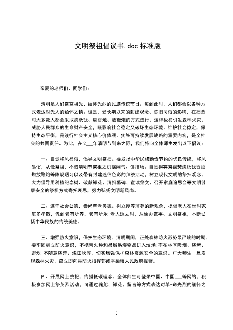 清明节将至,按照中华民族的传统习俗,大家都会以各种方式祭奠逝去的亲人,表达自己的思念之情。但人们扫墓祭祖时随地烧冥币、泼洒酒水、食品等祭奠方式,既污染环境,又可能引发火灾,隐患颇多。为此,学校倡议,营造以文明祭祀、平安清明为主题的文明祭奠新风。