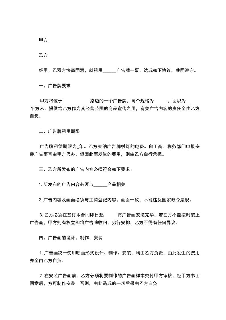 3、租赁物在合同期内经营广告权和使用权属乙方所有,因租赁物所获的所有收益及广告牌安全责任由乙方全部承担与甲方无关。