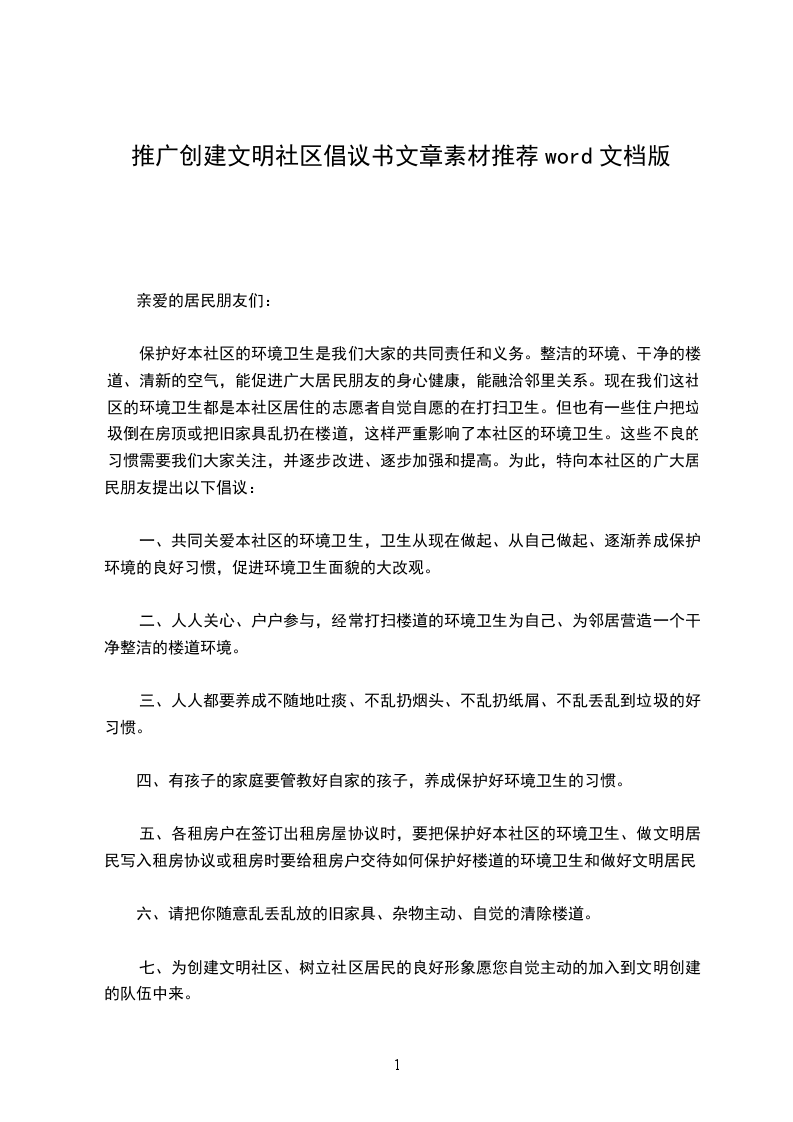 保护好本社区的环境卫生是我们大家的共同责任和义务。整洁的环境、干净的楼道、清新的空气,能促进广大居民朋友的身心健康,能融洽邻里关系。现在我们这社区的环境卫生都是本社区居住的志愿者自觉自愿的在打扫卫生。但也有一些住户把垃圾倒在房顶或把旧家具乱扔在楼道,这样严重影响了本社区的环境卫生。这些不良的习惯需要我们大家关注,并逐步改进、逐步加强和提高。为此,特向本社区的广大居民朋友提出以下倡议: