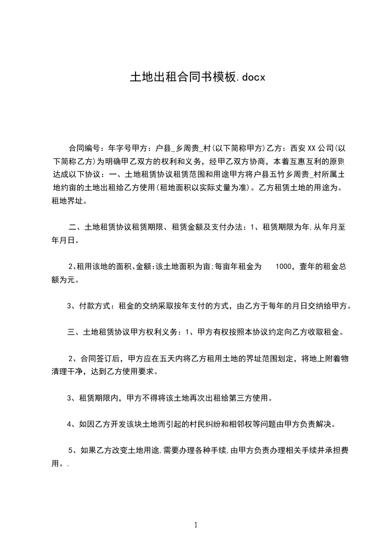 甲方将户县五竹乡周贵**村所属土地约 亩的土地出租给乙方使用(租地面积以实际丈量为准)
