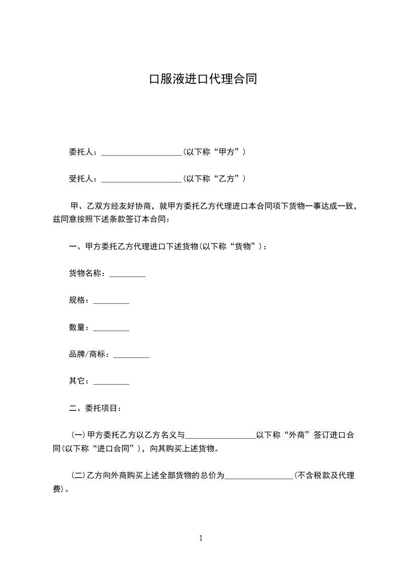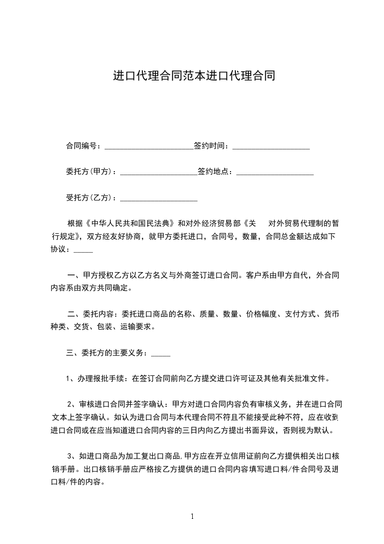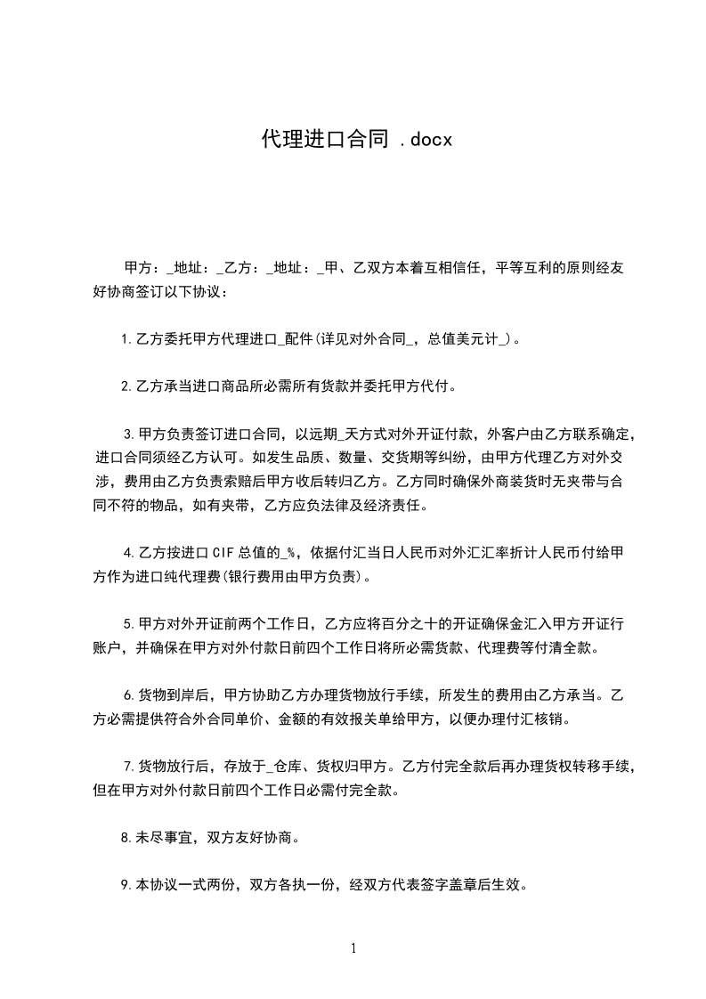 甲乙双方经友好协商,就甲方委托乙方代理进口_________业务达成以下协议: