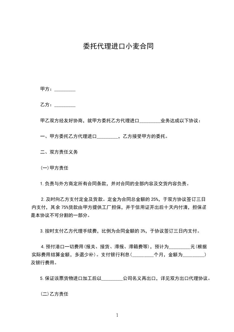 一、甲方委托乙方代理进口_________,乙方接受甲方的委托。