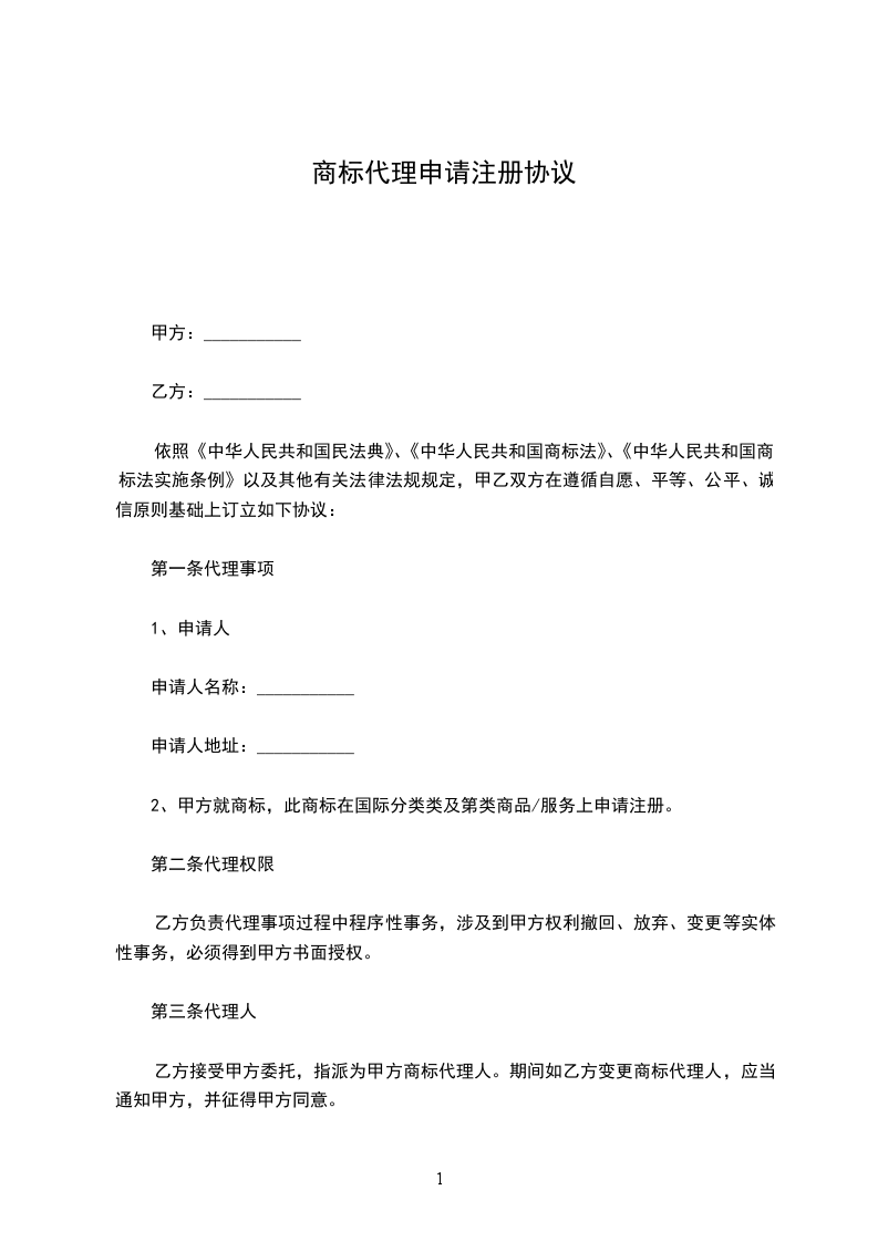 甲方委托乙方代理 申请事宜,甲乙双方本着诚实信用的原则为明确代理期间双方的责任和义务,特此订立本合同。