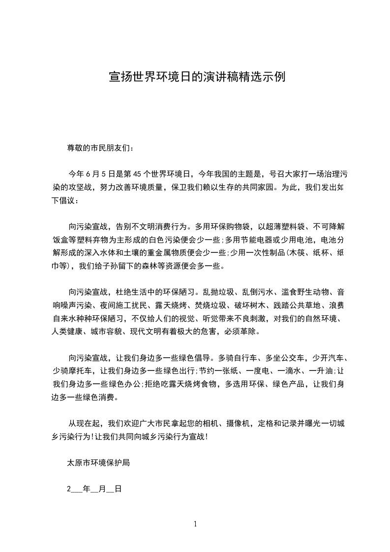 同学们,我们是21世纪将来的主人,环保意识是现代人的重要标志。我们应当切实地树立起时代责任感,应当心系全球,着眼身边,立足校园。爱护脚下草,莫折枝头花。“勿以善小而不为,勿以恶小而为之”,环保行动从我做起,从小做起,从身边做起,从现在做起。保护地球母亲,净化校园环境。让我们的校园更加美丽吧!