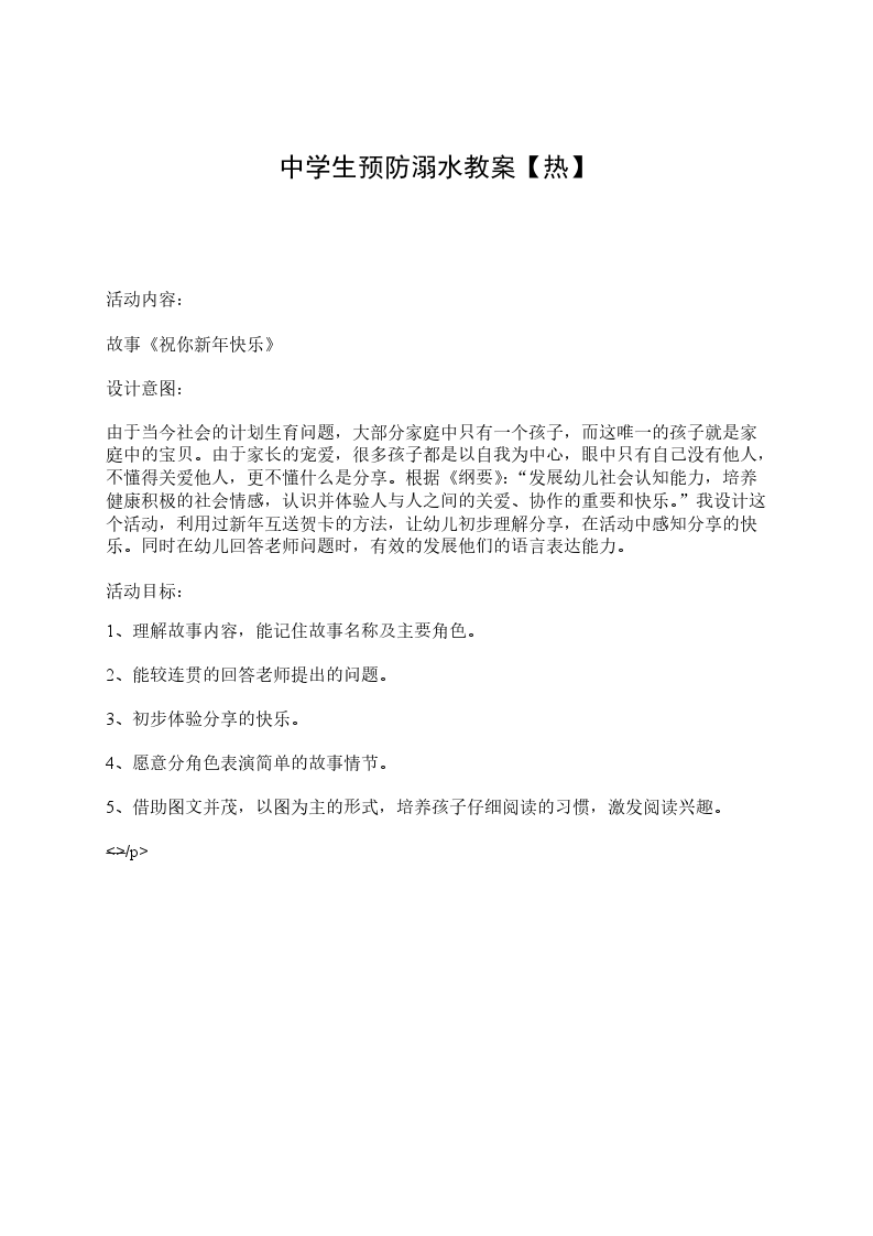 一、树立安全意识,加强自我保护,正确评估自身的游泳水平,不到那些陌生危险的自然水域,如深潭、野塘和溪边等处游泳;