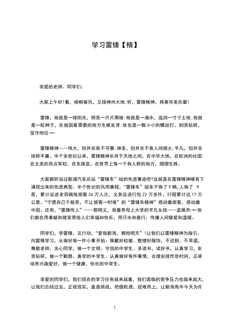 亲爱的同学们,我们现在的学习任务越来越重,我们面临的竞争压力也越来越大,让我们总结过去,正视现实,直面挑战,把握机遇,迎难而上,让新海高中今天为你的努力而光荣,明天为你的成就而骄傲!让我们行动起来,手拉手,心连心,用我们的实际行动,把雷锋精神发扬光大,让雷锋之花永放光芒!