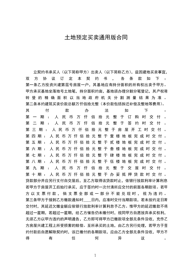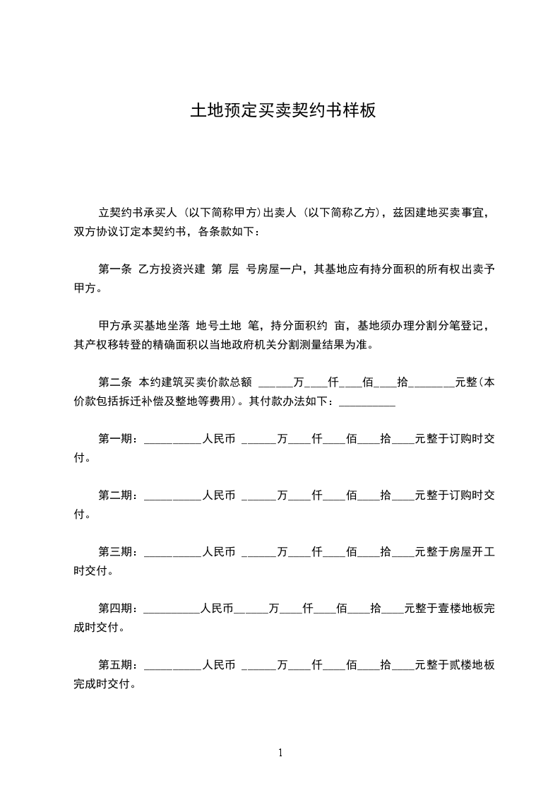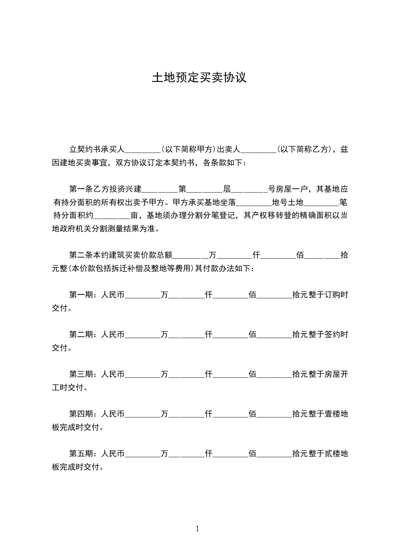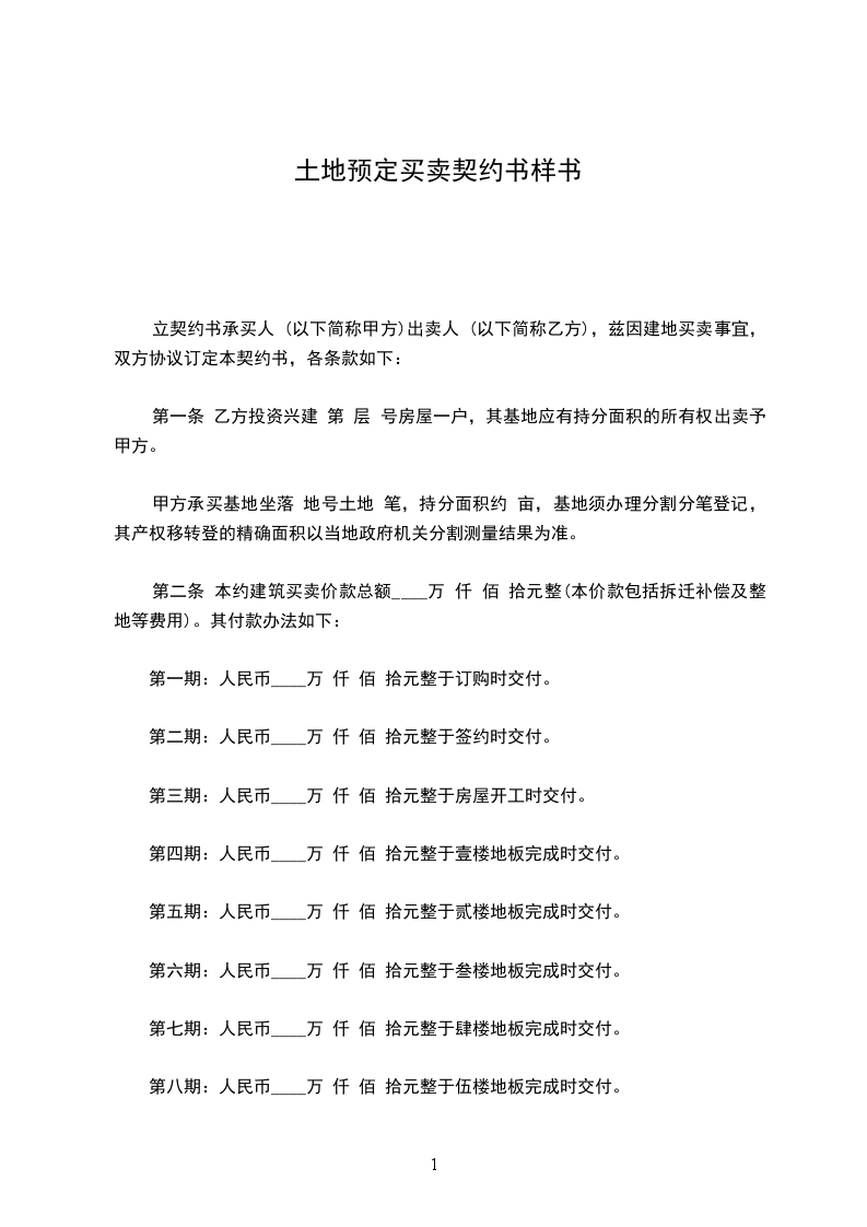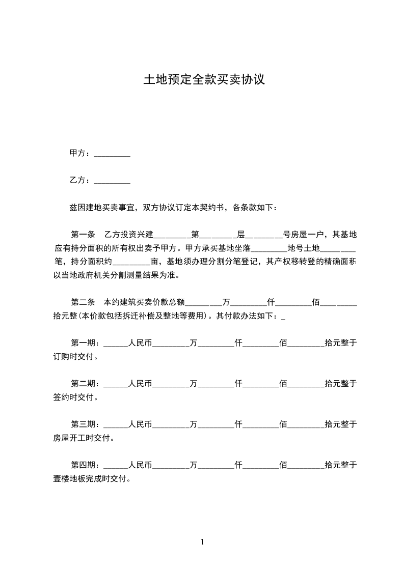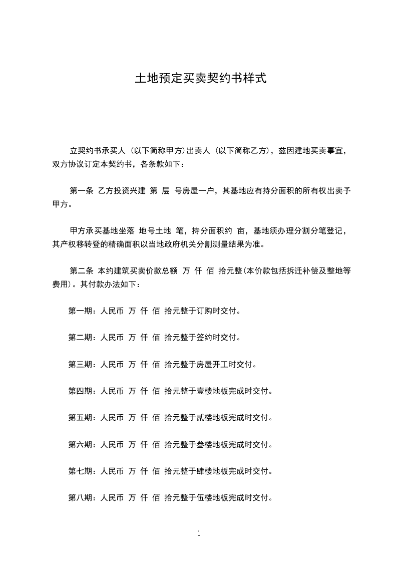 第一期:人民币x万x仟x佰x拾元整于订购时交付。