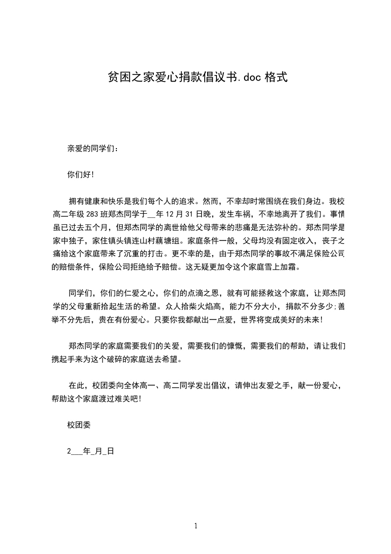 在人类历史的长河中,爱的暖流绵绵不断,源远流长。中华民族素有积德行善、济贫扶危的传统美德。今天,沐浴着改革开放的春风,集聚在共同富裕的旗帜下,我们怎能眼睁睁看着工友煎受病痛的折磨,现向全公司广大员工发出倡议,请伸出友爱之手,献一份爱心,帮助胡友兰战胜病痛吧!