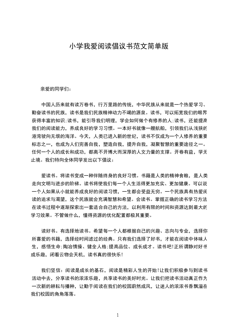 中国人历来就有读万卷书,行万里路的传统,中华民族从来就是一个热爱学习、勤奋读书的民族,读书是我们民族精神动力不竭的源泉。读书,可以拓宽我们的眼界,获得丰富的知识;读书,能引导我们明理,学会如何做个有修养的人;读书,还能提高我们的阅读能力,养成良好的学习习惯。一本好书就像一艘航船,引领我们从浅狭的港湾驶向无垠的海洋。今天,人类已进入新的世纪,读书不仅成为一个人修养的重要标志之一,也成为人们完善自我,塑造自我,提升自我,凝聚智慧的重要途径之一。任何一个人的成长和成功,都离不开博大而深厚的人文力量的支撑。开卷有益,学无止境。我们特向全体同学发出以下倡议: