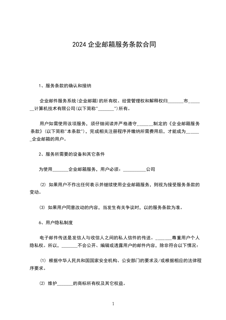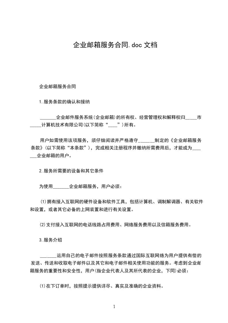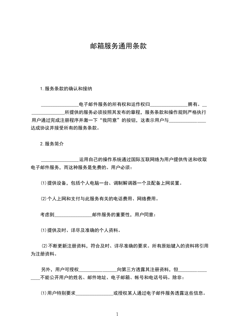 用户如需使用该项服务,须仔细阅读并严格遵守_______制定的《企业邮箱服务条款》(以下简称"本条款"),完成相关注册程序并缴纳所需费用后,才能成为_______企业邮箱的用户。