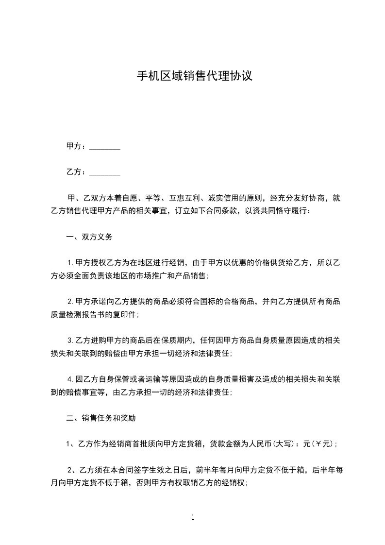 a.奖励:(1)遵守本协议规定的市场管理条例的区域代理商可获得奖励(具体奖励协商而定);(2)配合甲方进行市场管理,协助甲方寻找跨区域产品的区域代理可获得奖励(协商而定)。