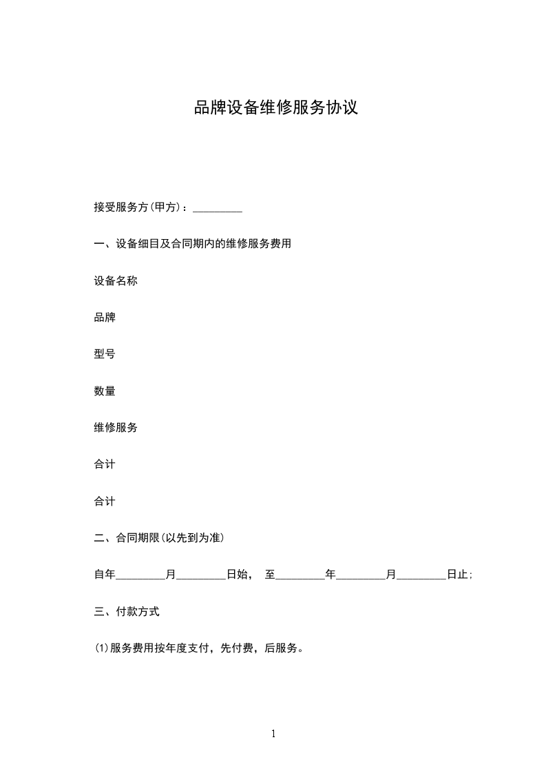 甲、乙双方经友好协商,就乙方为甲方______________系列产品提供技术维修服务,达成以下协议:
