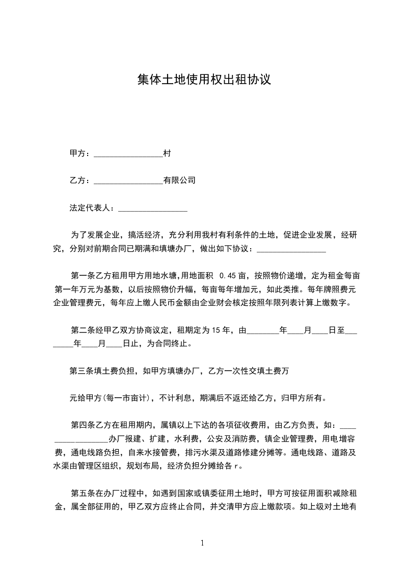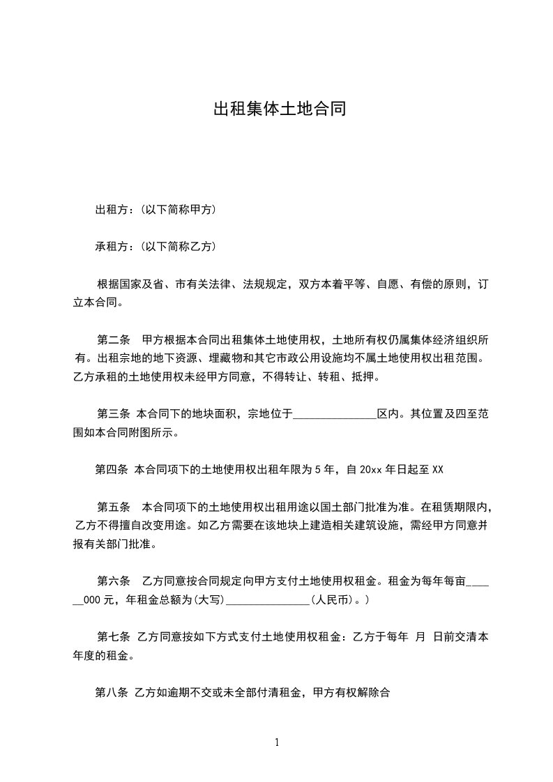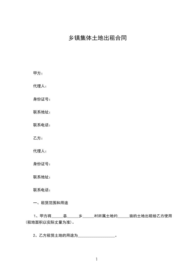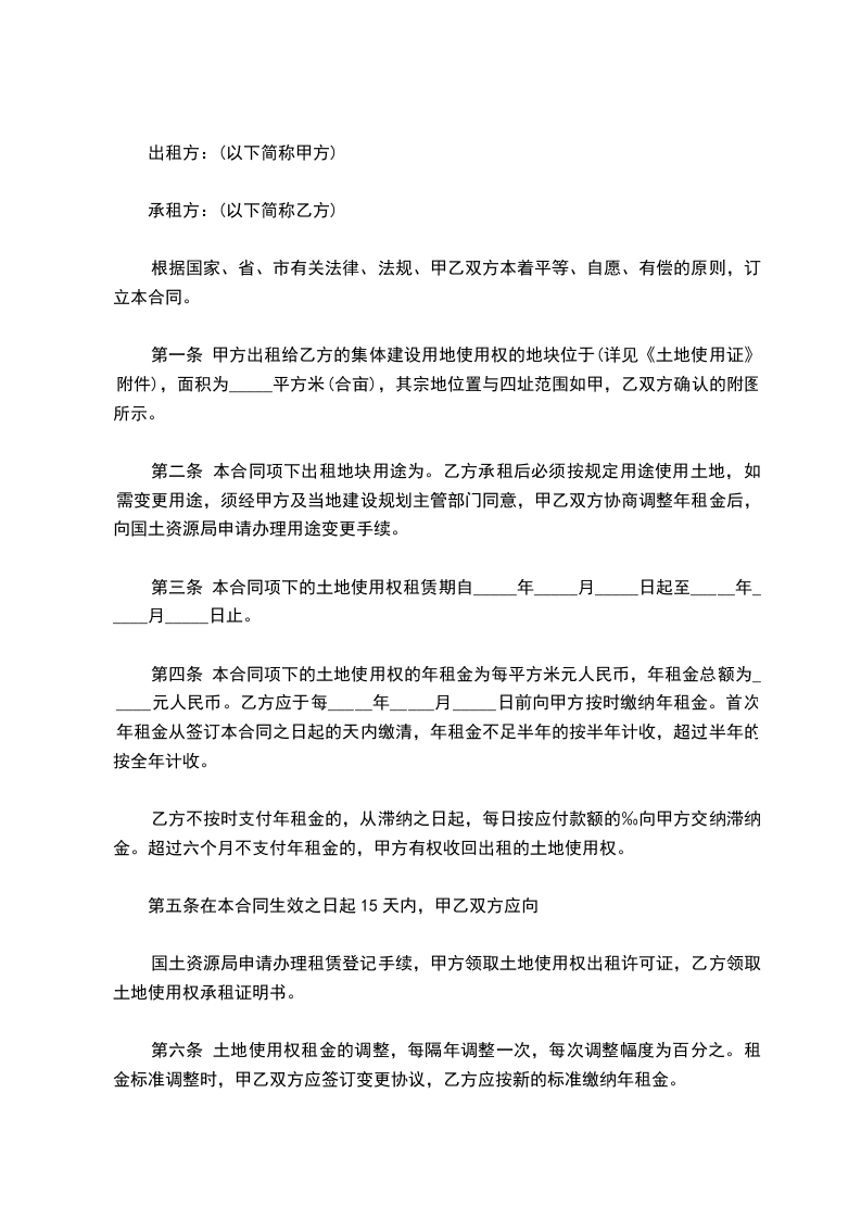 一、甲方将位于____市____路____号的____亩土地的使用权及地上建筑物、构筑物、附着物等(见附件)出租给乙方使用。