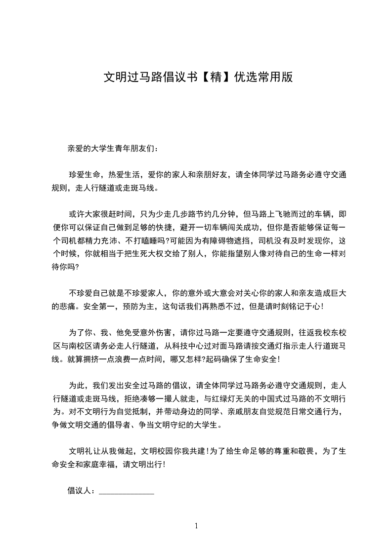 亲爱的同学们,为了大家免受意外伤害,我们在此特发出安全文明过马路倡议: