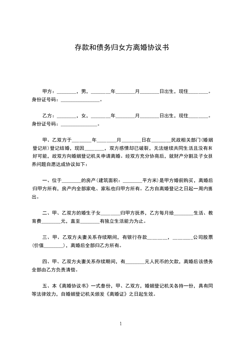 三、甲、乙双方夫妻关系存续期间,有银行存款________,________公司股票(价值________),离婚后全部归乙方所有。