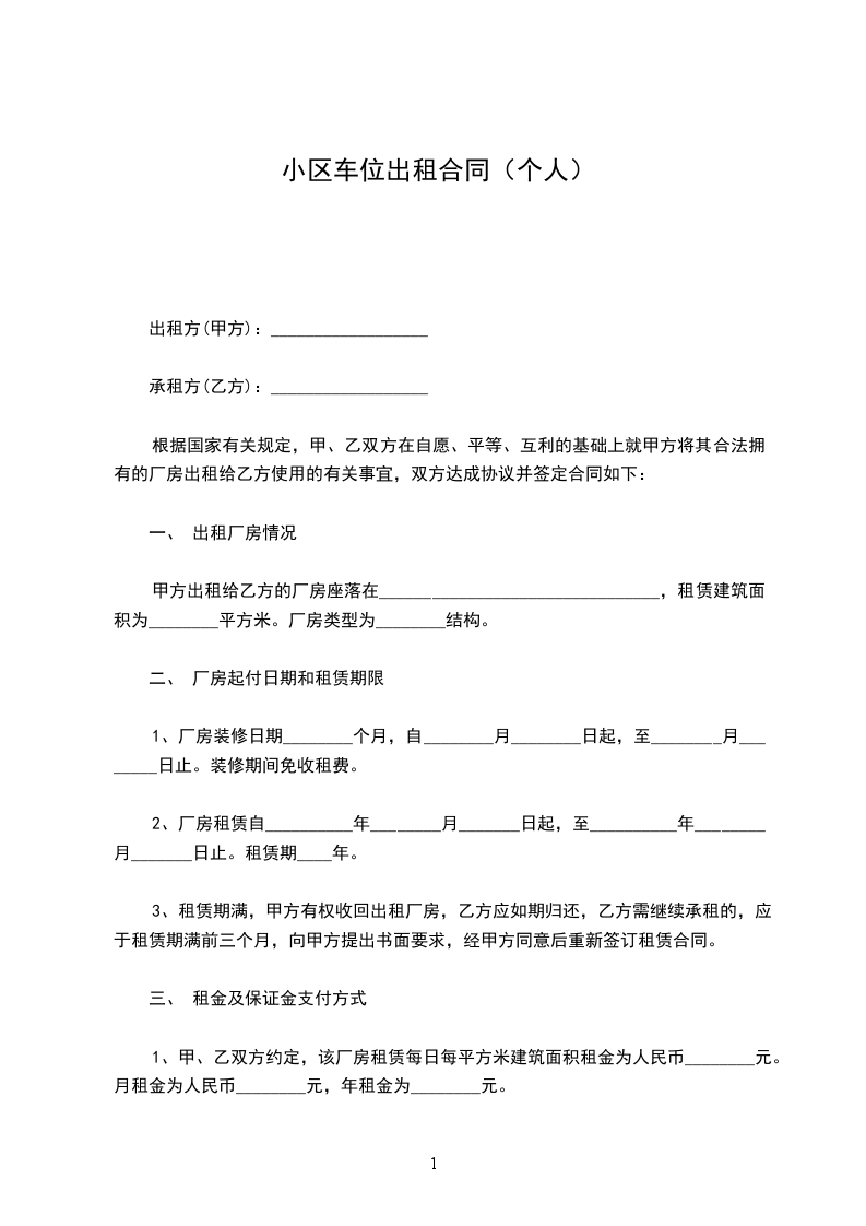 1、甲、乙双方约定,该厂房租赁每日每平方米建筑面积租金为人民币________元。月租金为人民币________元,年租金为________元。