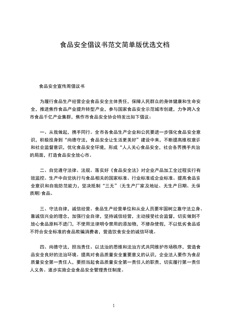 为履行食品生产经营企业食品安全主体责任,保障人民群众的身体健康和生命安全,推进焦作食品产业提升转型产业,参与国家食品安全示范城市创建,力争跨入全市食品千亿产业集群,焦作市食品安全协会特发出如下倡议: