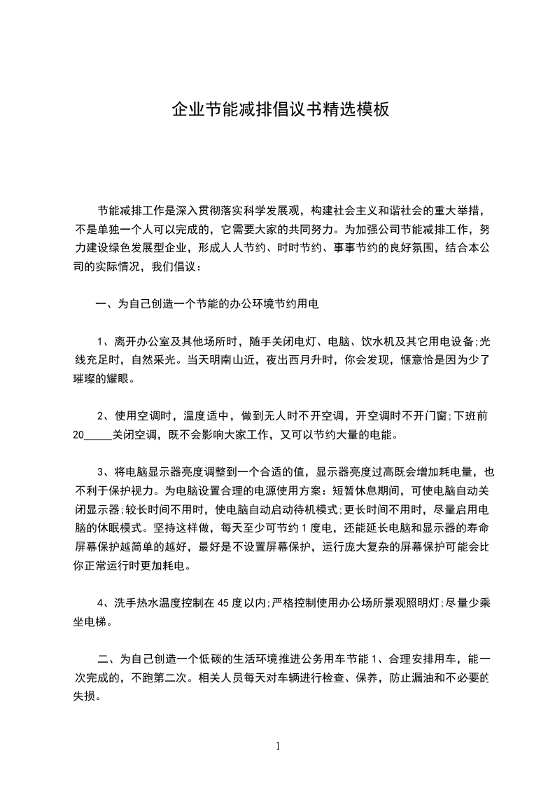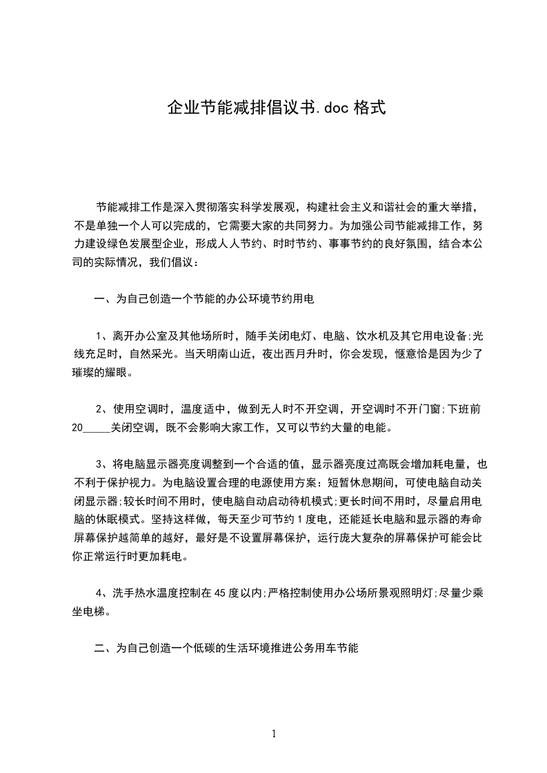 节能减排工作是深入贯彻落实科学发展观,构建社会主义和谐社会的重大举措,不是单独一个人可以完成的,它需要大家的共同努力。为加强公司节能减排工作,努力建设绿色发展型企业,形成人人节约、时时节约、事事节约的良好氛围,结合本公司的实际情况,我们倡议: