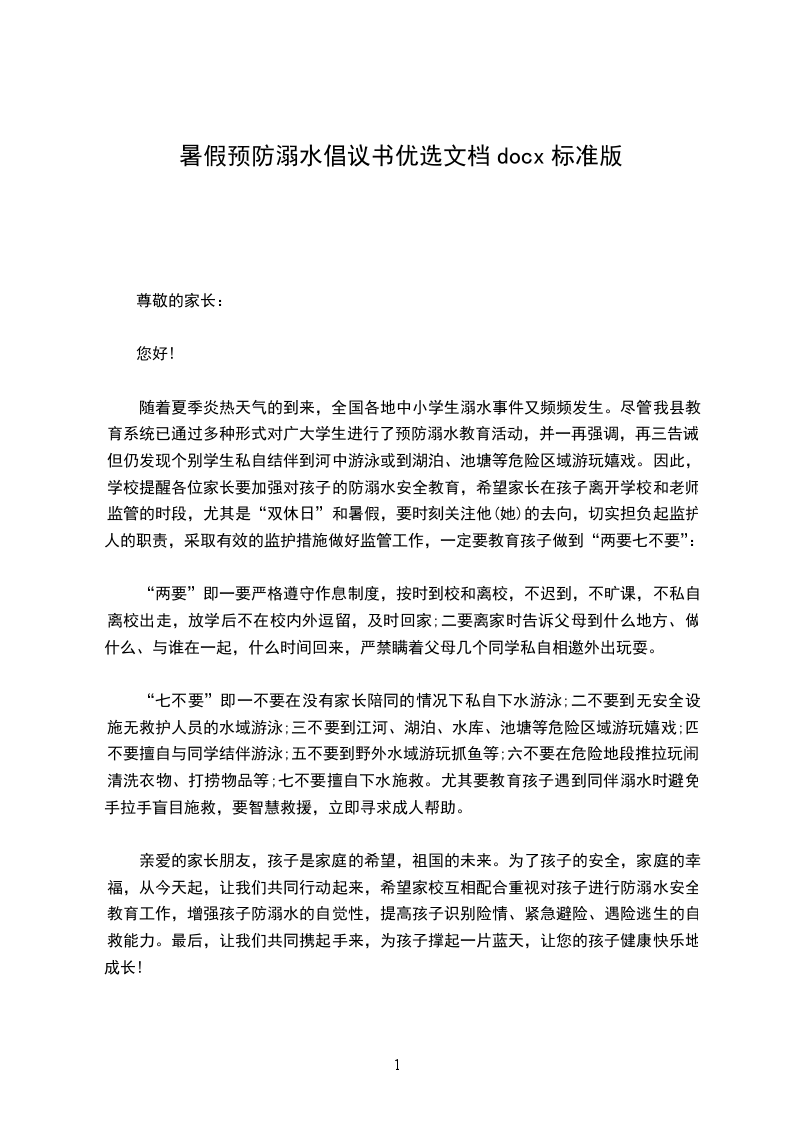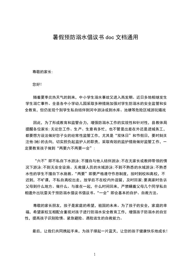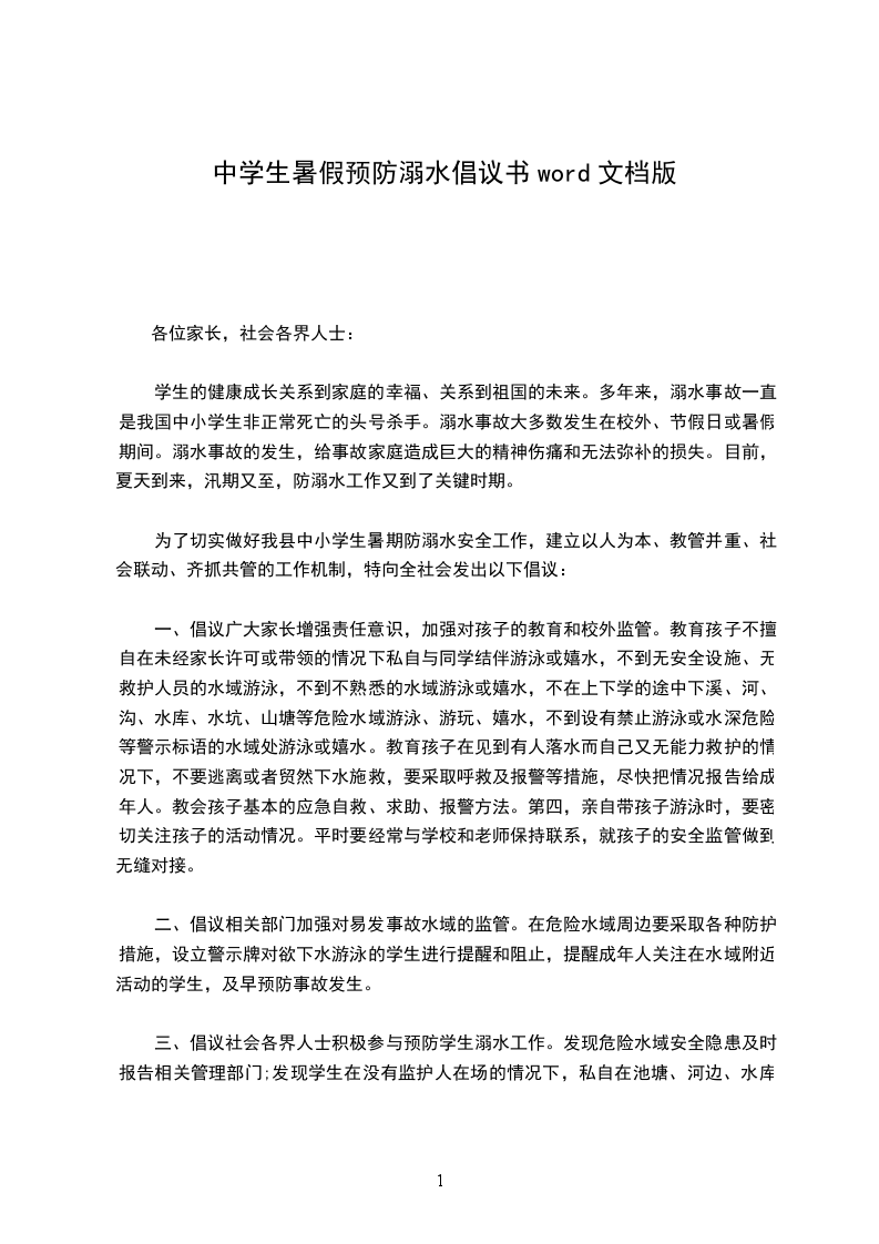 一、倡议广大家长增强责任意识,加强对孩子的教育和校外监管。第一,教育孩子不擅自在未经家长许可或带领的情况下私自与同学结伴游泳或嬉水,不到无安全设施、无救护人员的水域游泳,不到不熟悉的水域游泳或嬉水,不在上下学的途中下溪、河、沟、水库、水坑、山塘等危险水域游泳、游玩、嬉水,不到设有禁止游泳或水深危险等警示标语的水域处游泳或嬉水。第二,教育孩子在见到有人落水而自己又无能力救护的情况下,不要逃离或者贸然下水施救,要采取呼救及报警等措施,尽快把情况报告给成年人。第三,要教会孩子基本的应急自救、求助、报警方法。第四,亲自带孩子游泳时,要密切关注孩子的活动情况。第五,平时要经常与学校和老师保持联系,就孩子的安全监管做到无缝对接。