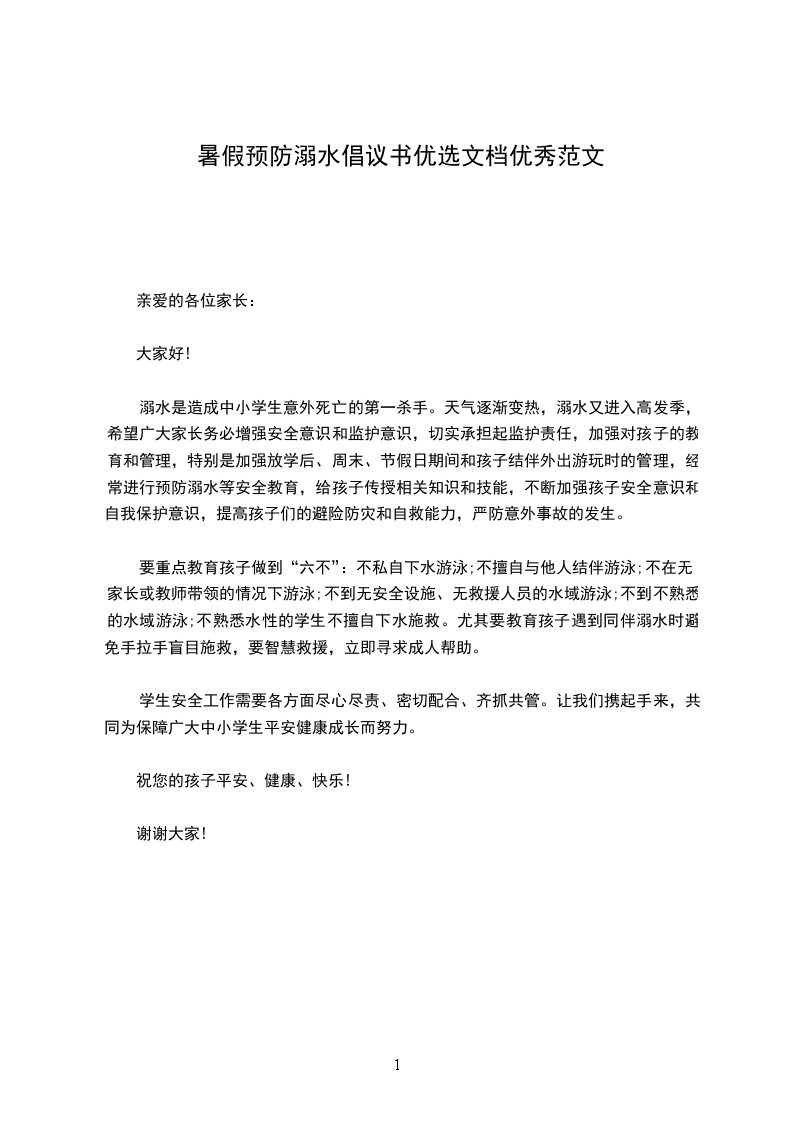 尽管教育部门加强了对学生防溺水的教育和监管,但我市近期还是发生了中小学生溺水事故。为切实做好我区中小学生防溺水安全工作,建立以人为本、教管并重、社会联动、齐抓共管的工作机制,特向全社会发出以下倡议: