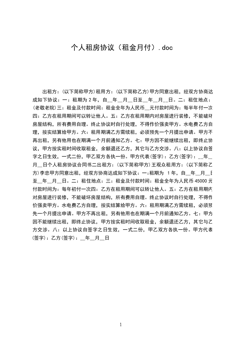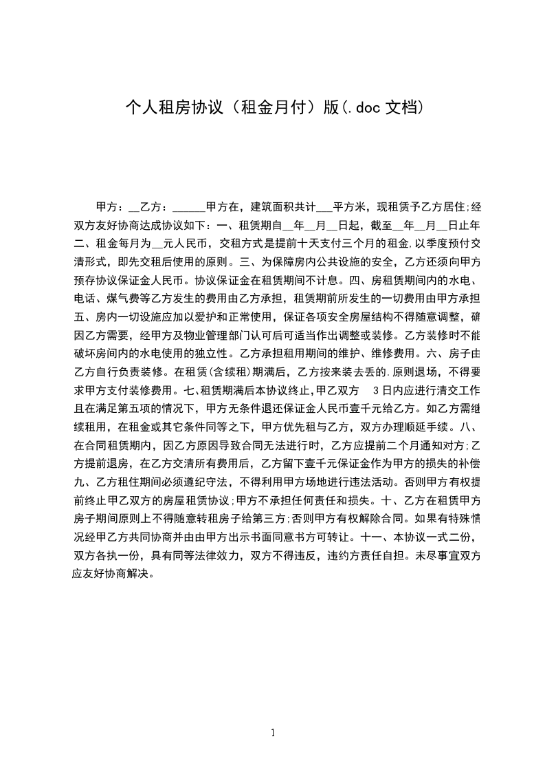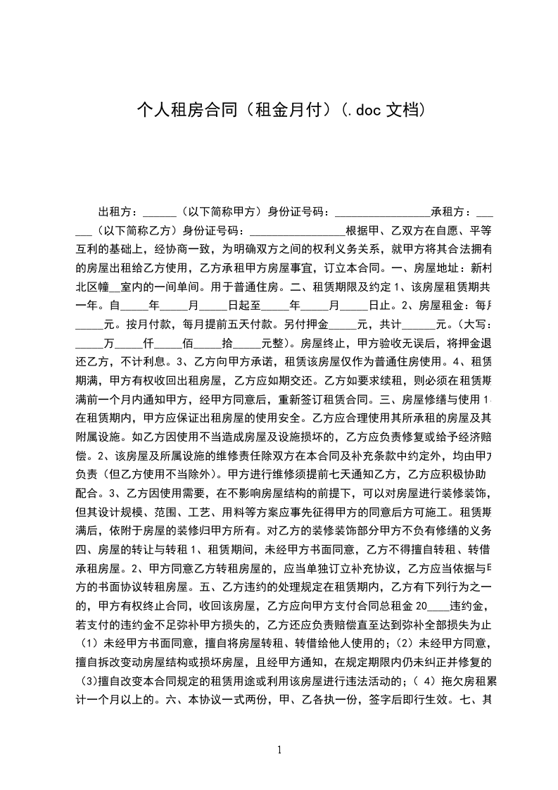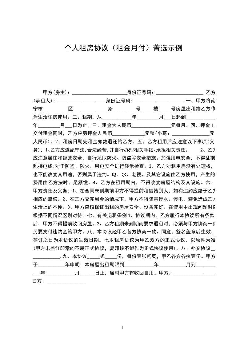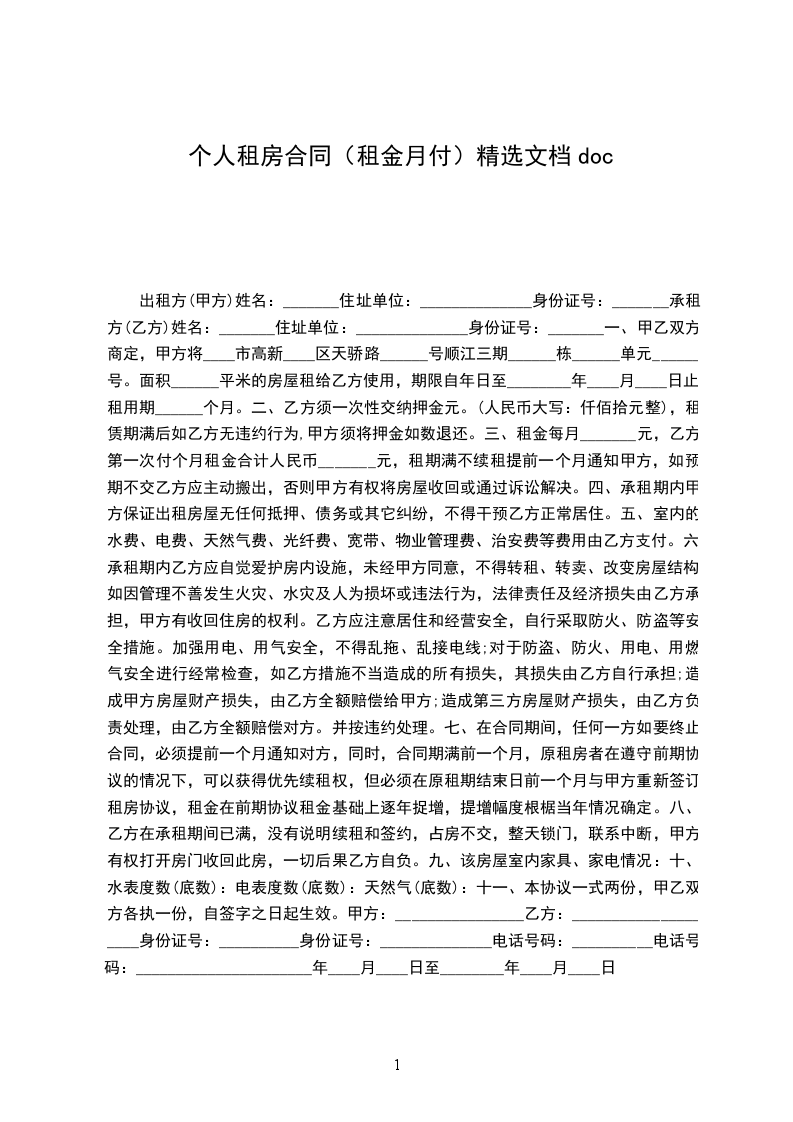 现经甲乙双方充分了解、协商、一致达成如下租房合同: