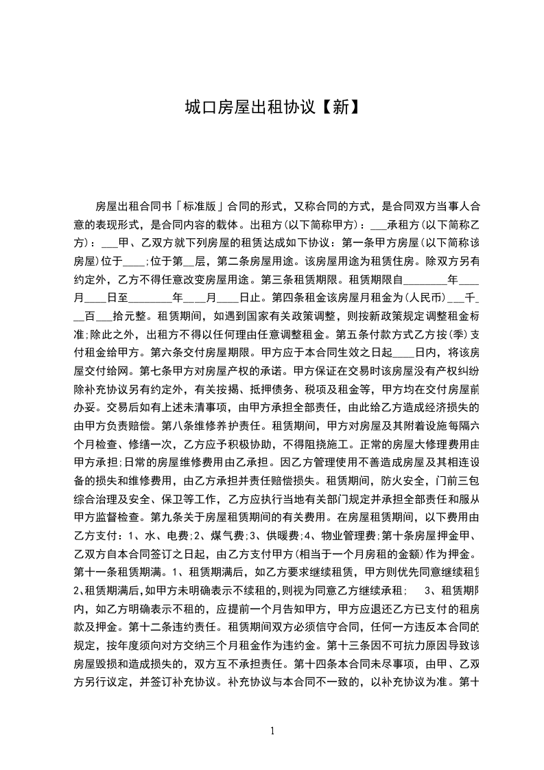 房屋出租合同书「标准版」合同的形式,又称合同的方式,是合同双方当事人合意的表现形式,是合同内容的载体。出租方(以下简称甲方):___承租方(以下简称乙方):___甲、乙双方就下列房屋的租赁达成如下协议:
