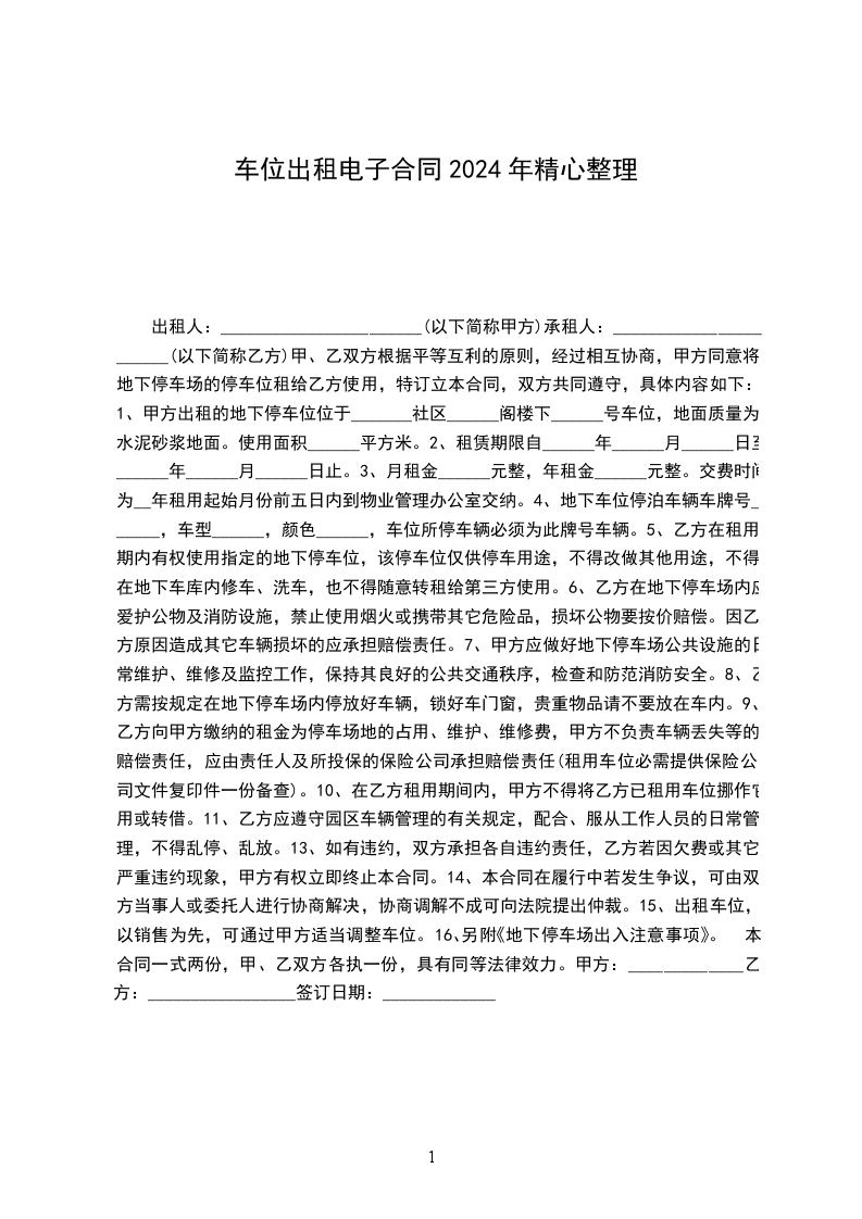 甲、乙双方根据平等互利的原则,经过相互协商,甲方同意将地下停车场的停车位租给乙方使用,特订立本合同,双方共同遵守,具体内容如下: