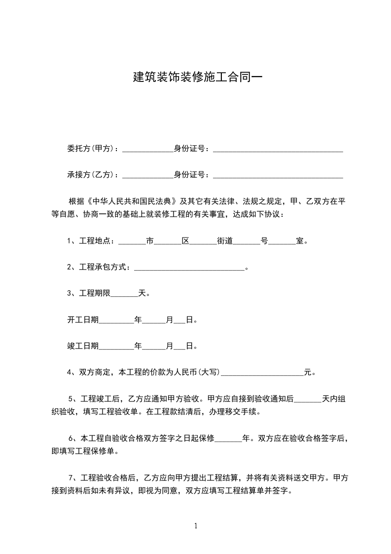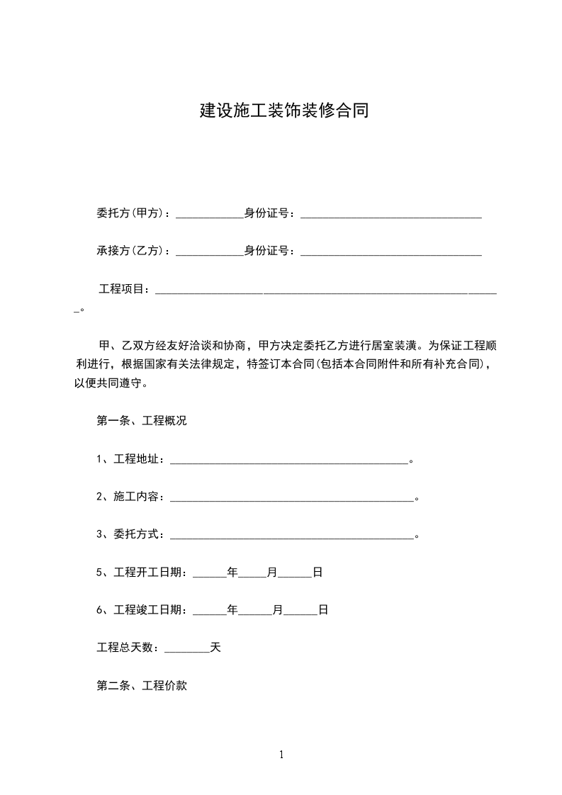 工程价款(金额大写)___________________元