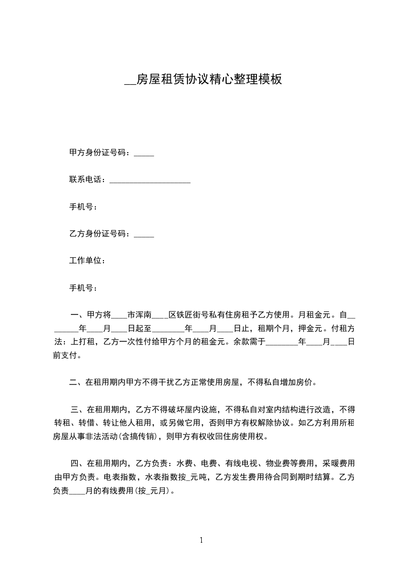 一、甲方将座落在_____市区路(村)街(坊)号的房屋,建筑面积___________平方米,(房厅或间)出租给乙方,作使用。
