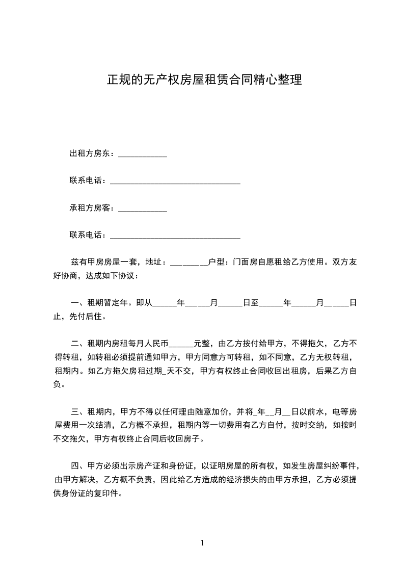 1、甲方承诺对此房屋充分拥有合法产权,否则引起的一切法律后果均由甲方承担。