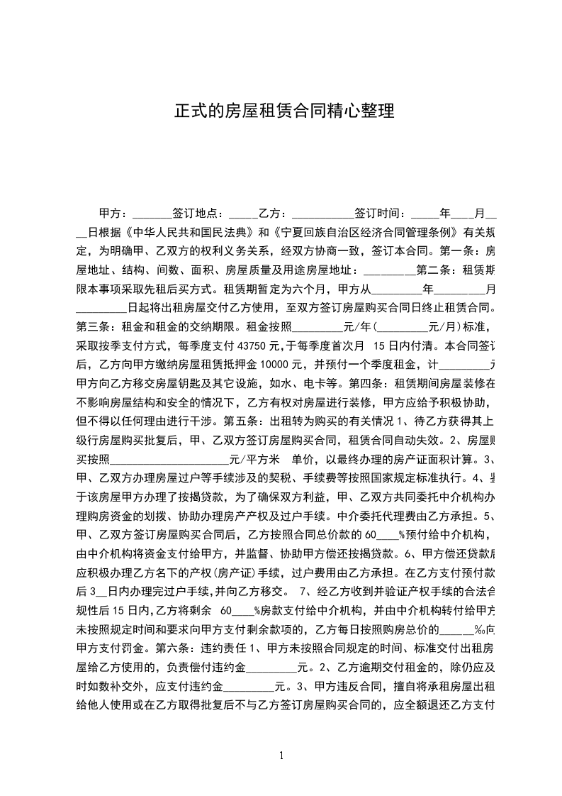 4、乙方违反合同,自行装修房屋、租赁期满后不购买此房,应赔偿租赁前甲方全部装修款_________元,同时另行支付违约金_________元。