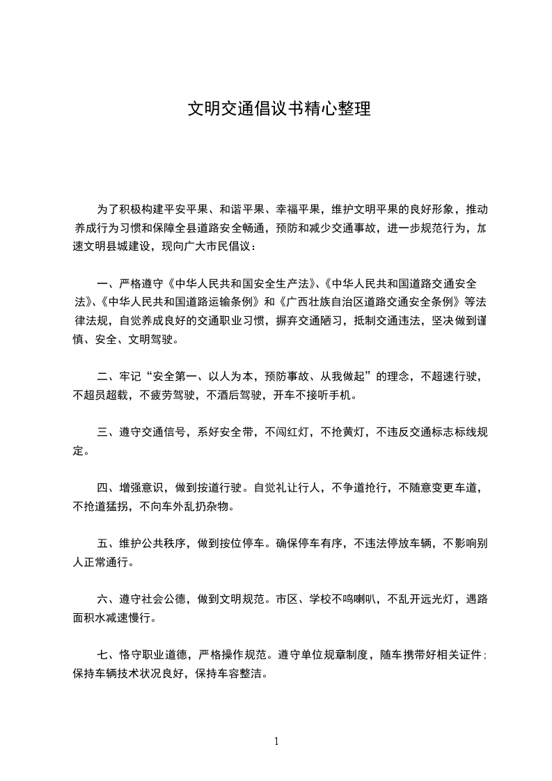 为了积极构建平安平果、和谐平果、幸福平果,维护文明平果的良好形象,推动养成行为习惯和保障全县道路安全畅通,预防和减少交通事故,进一步规范行为,加速文明县城建设,现向广大市民倡议: