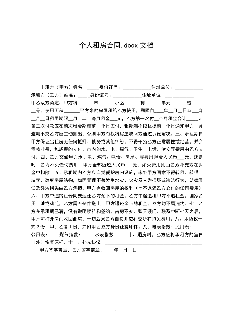 乙方(租客):___________签名/盖章身份证号码:______________________________________________(需本人填写)