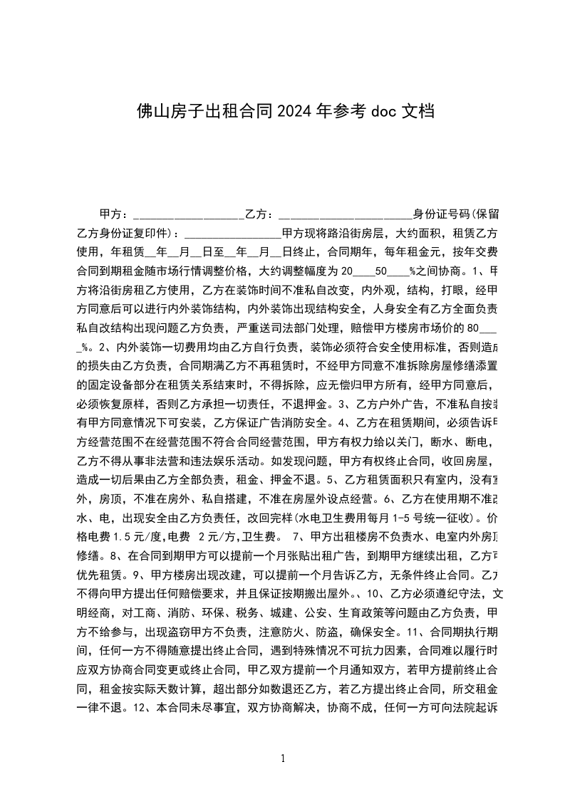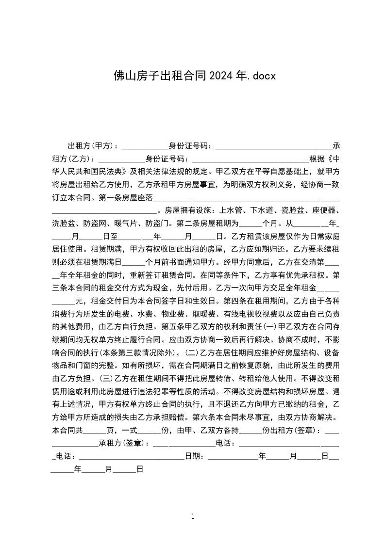 出租方(甲方):____________身份证号码:______________________________