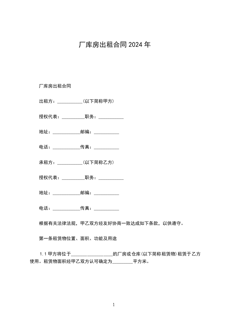 2、厂房租赁自_____年____月____日起,至____年____月____日止。租赁期______年。